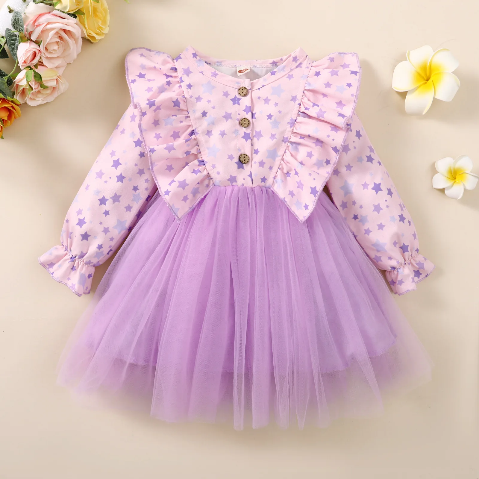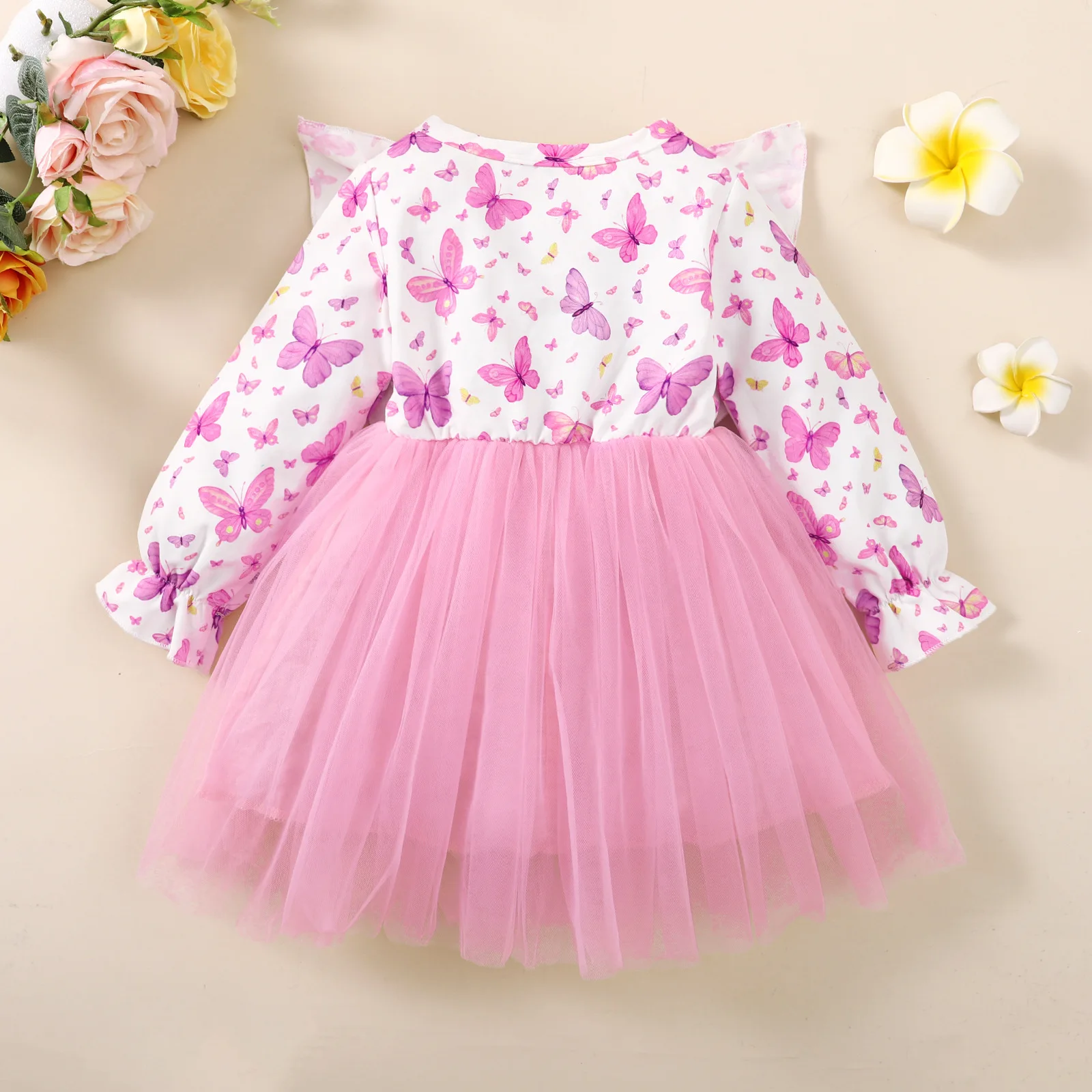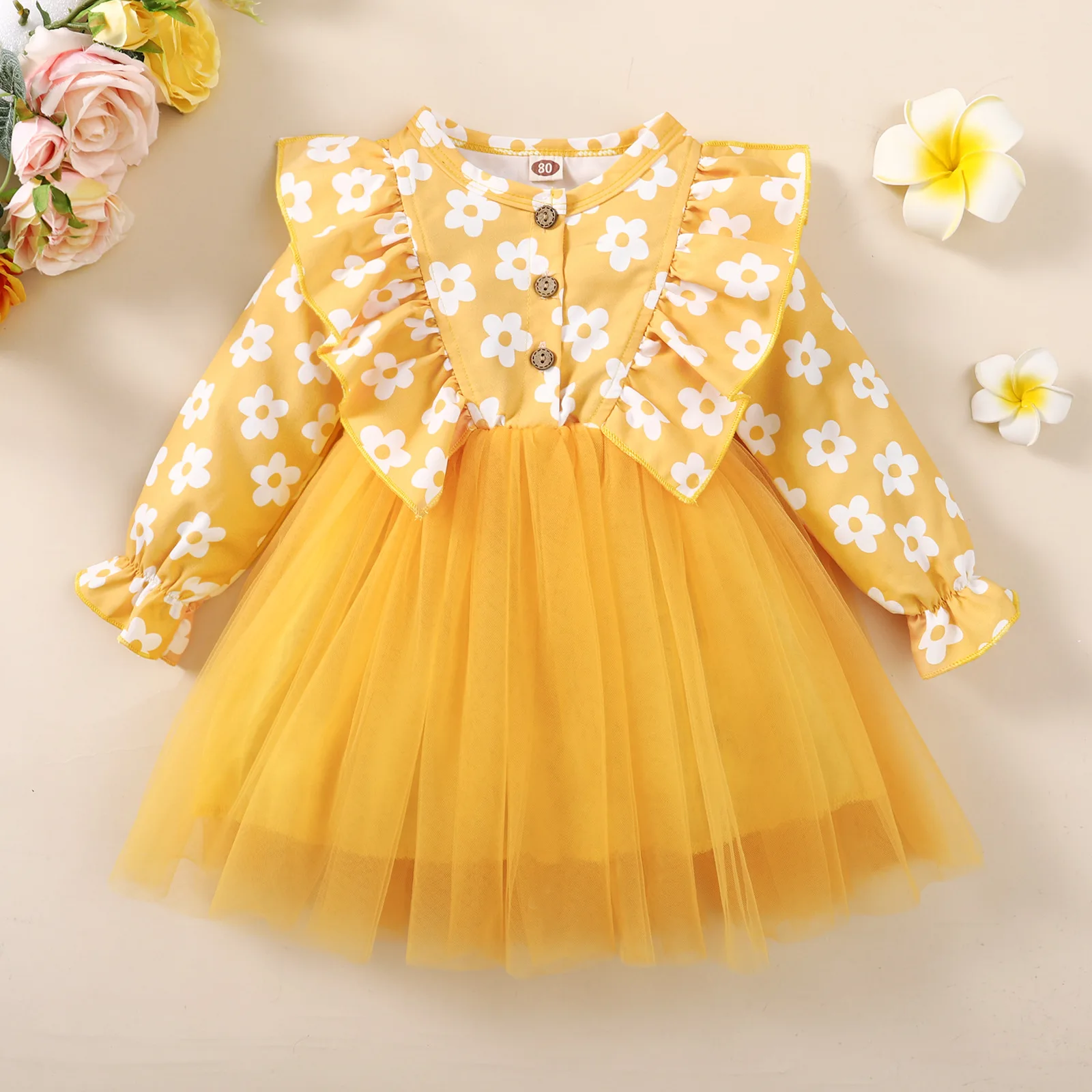 2022 Autumn Cute Tulle Baby Girl Dresses Long Sleeve Flower Birthday Party Princess Toddler Girls Clothes Kids Dress