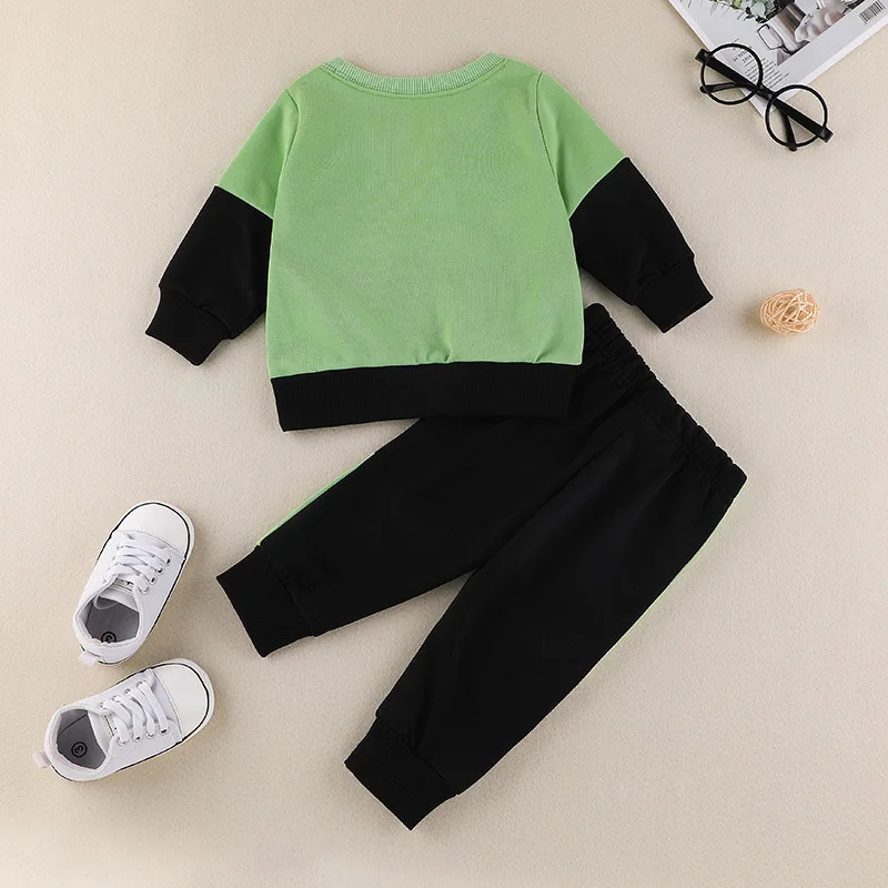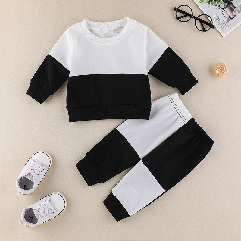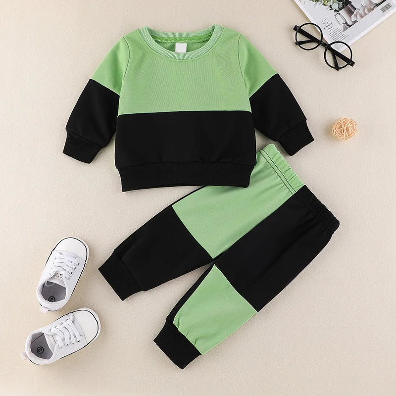 2022 Baby Spring Autumn Fashion Colorful Long Sleeve Splicing Patchwork Sweater Solid Color Pants Two Pieces Boys Sports Outfits