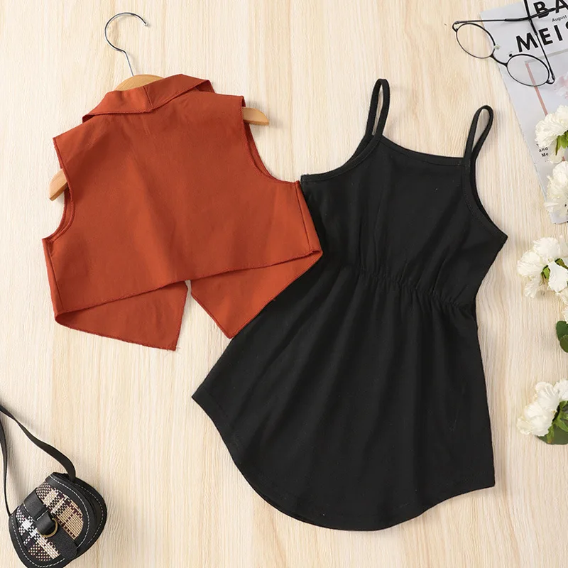 2022 Children Girls Suits Solid Color Vest Sleeveless Dress Clothing Sets Baby Girl Two Pieces Casual Outfits Kid Summer Clothes
