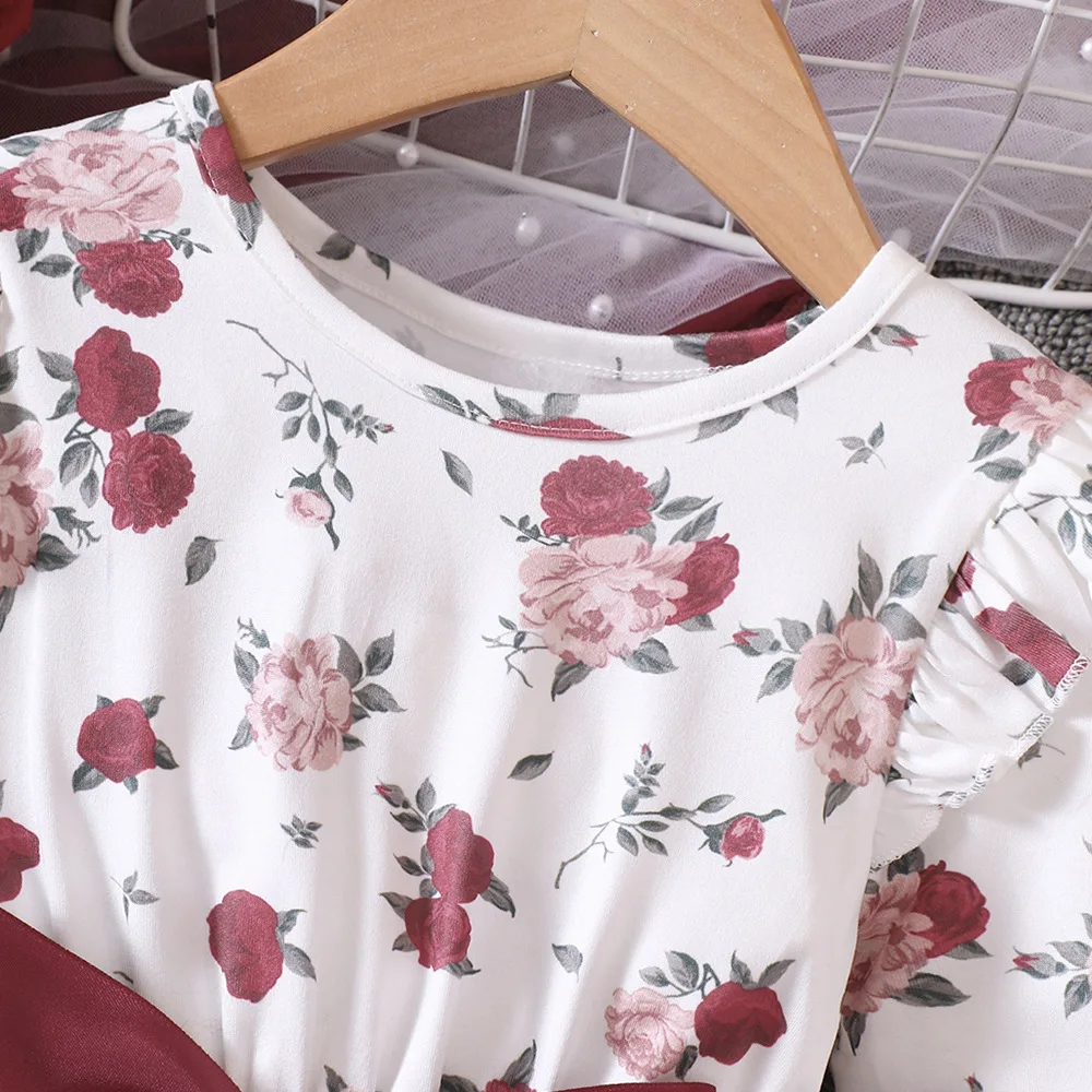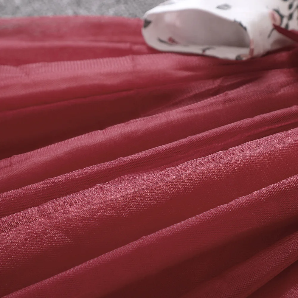 Designer Kids Clothes 2026 Spring Autumn Children Outfits Long Sleeve Round Neck Print Gauze Tutu Dress Girls Floral Dresses