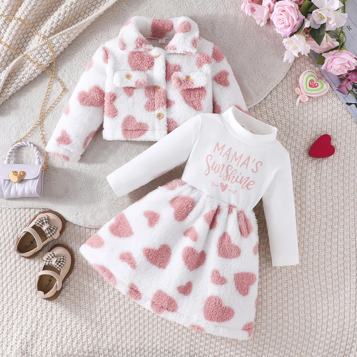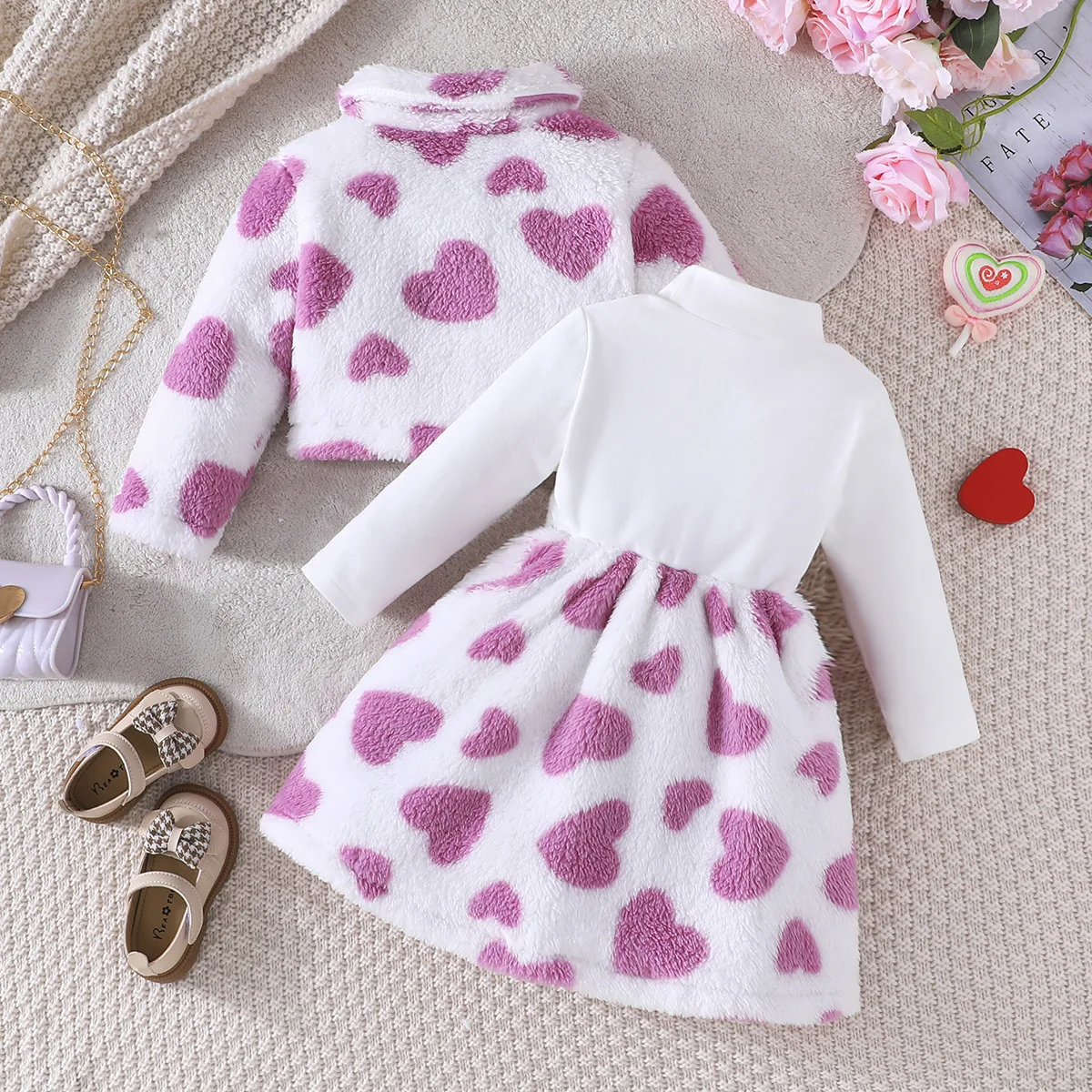 Child Clothes 2026 New Hot Sale Little Girl Outfit Long Sleeve Turtleneck Letter Dress Fur Print Coat 2Pcs Kids Winter Set