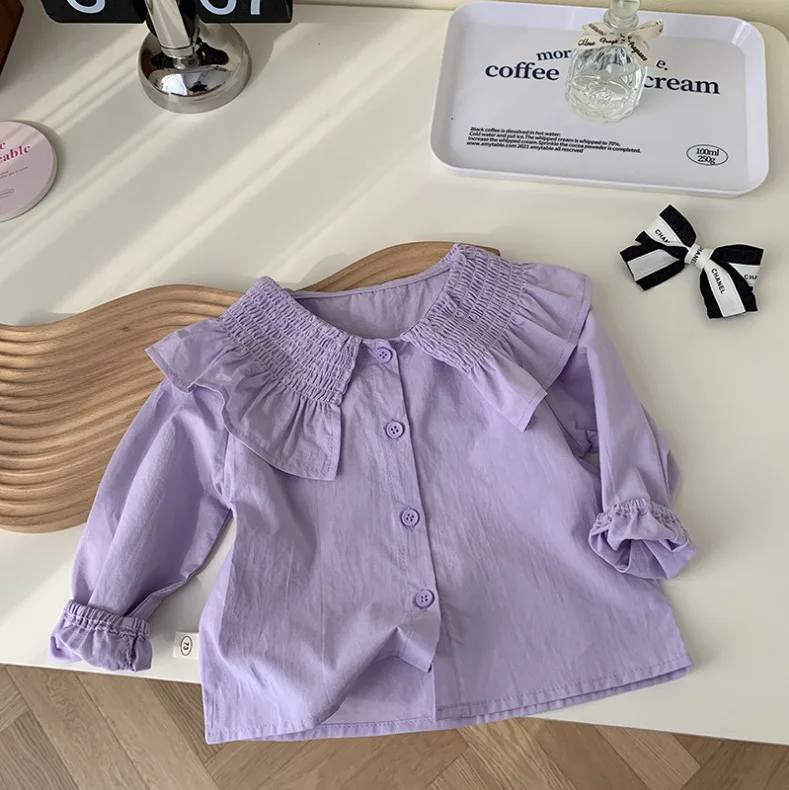 Children's Long Sleeve Top Apparel Customizable Plain Washed Ripped Tee Basic Layering Shirt Multi Colors