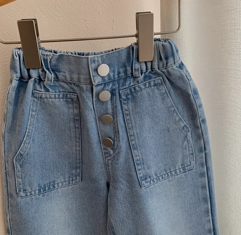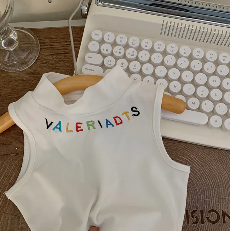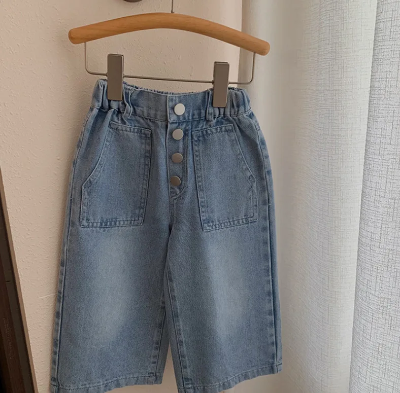 2026 Summer Children Fashion Clothes Wholesale Letter Embroidery Vest Wide Leg Denim Pants 2Pcs Kids Clothing Girls