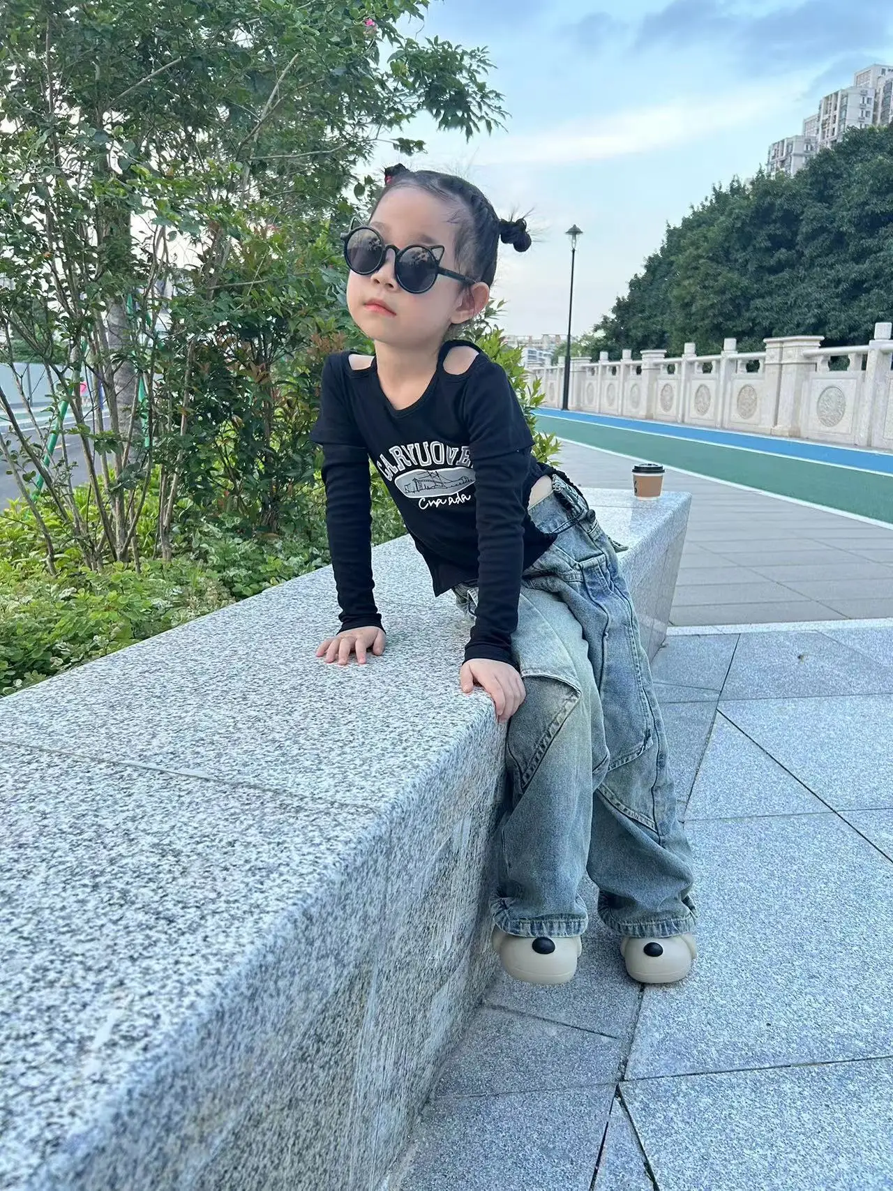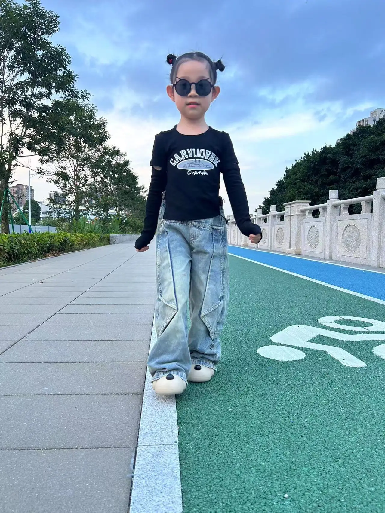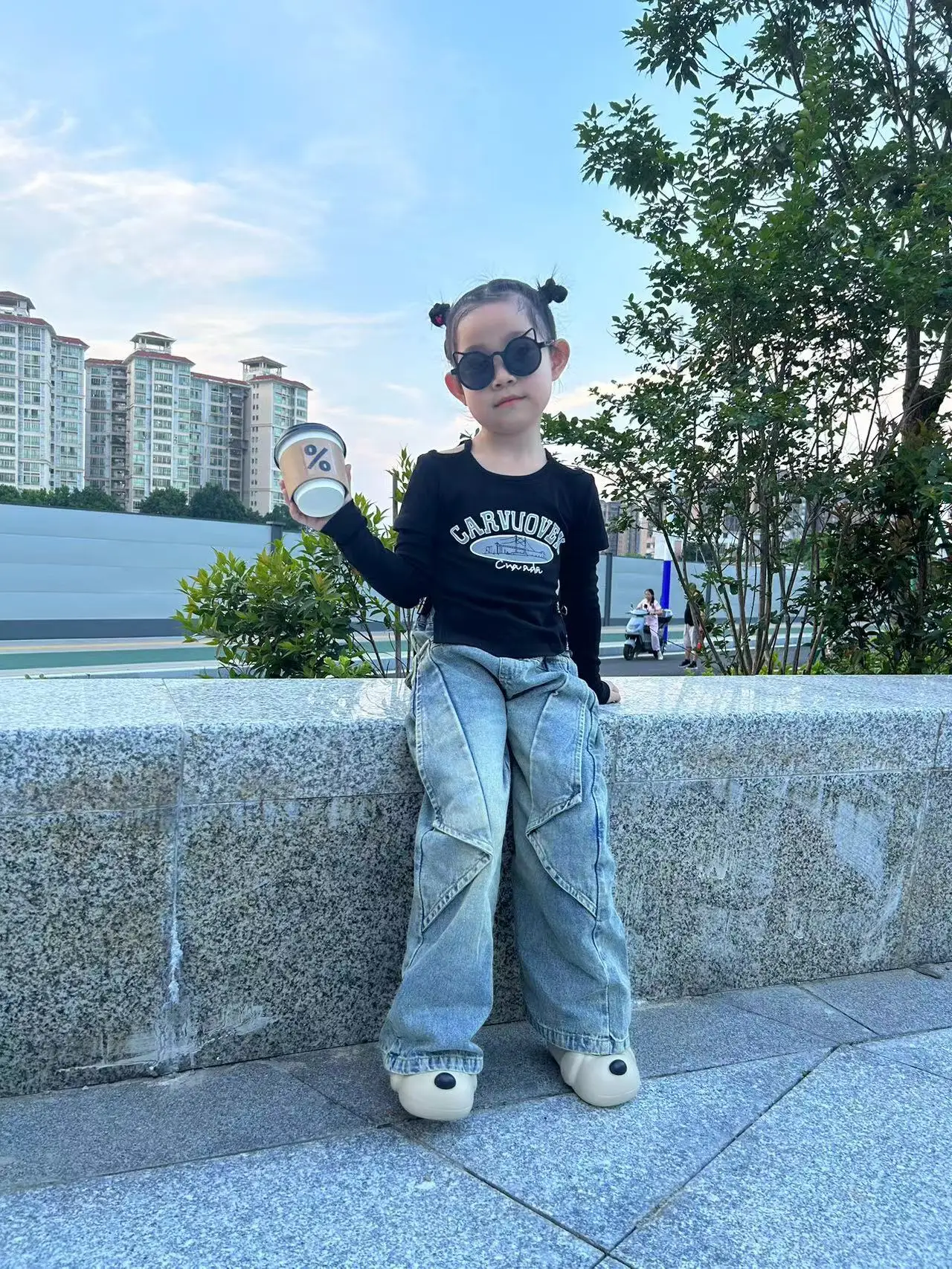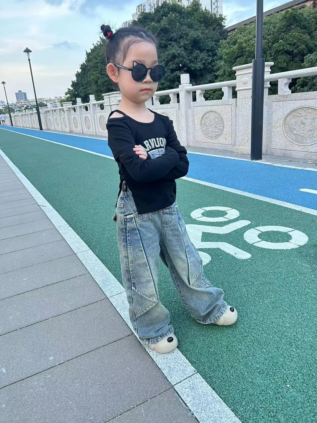 2026 Cool Long-Sleeved Girls Clothing Set Top and Stylish Trendy Wide-Leg Jeans Set Casual Fashionable Design for Kids' Wear