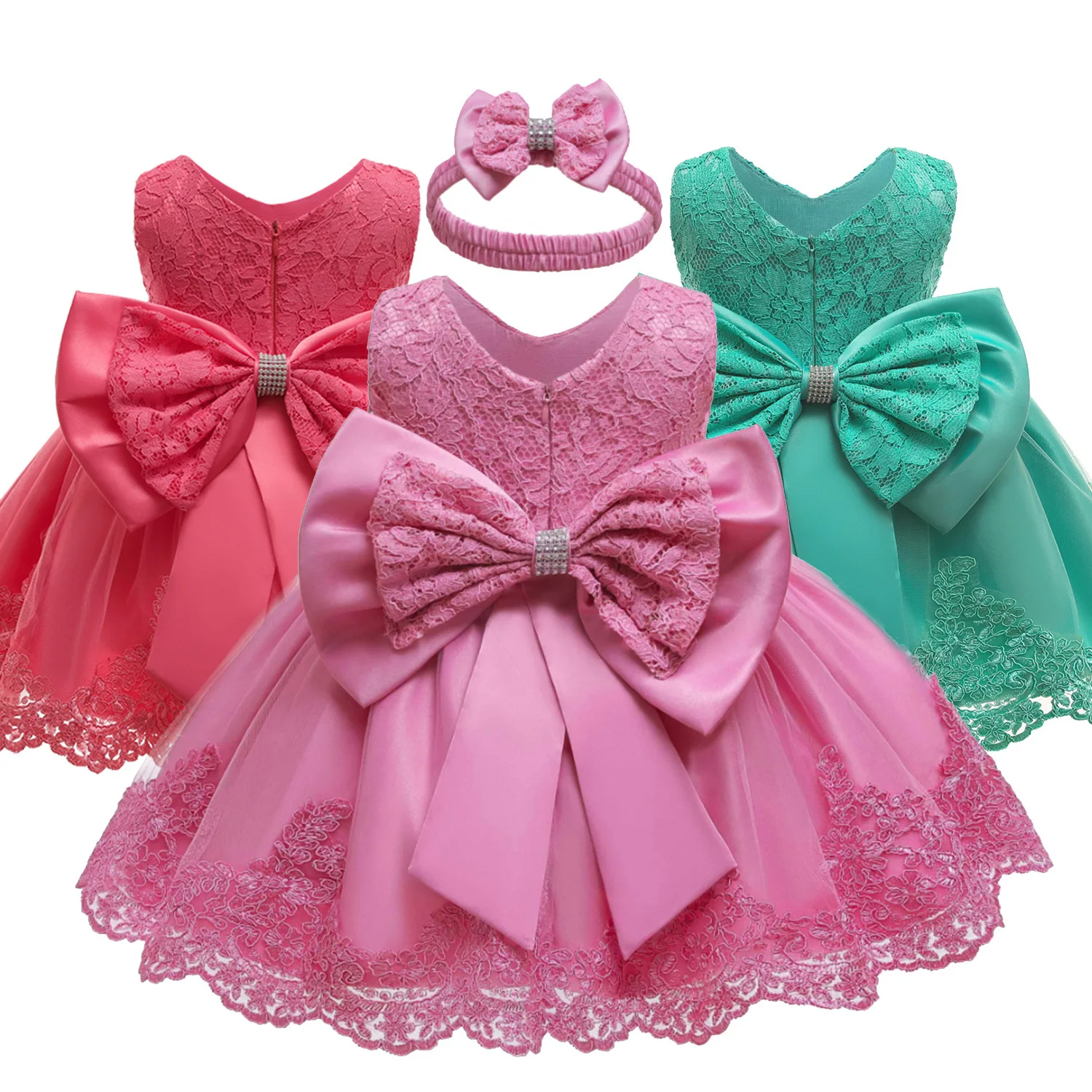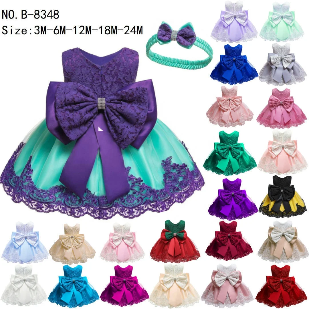 2021 Princess Toddler Baby Girls Lace Big Bowknot Wedding Party Tutu Dresses Bow Headband 2PCS Infant Clothes Kids Formal Dress