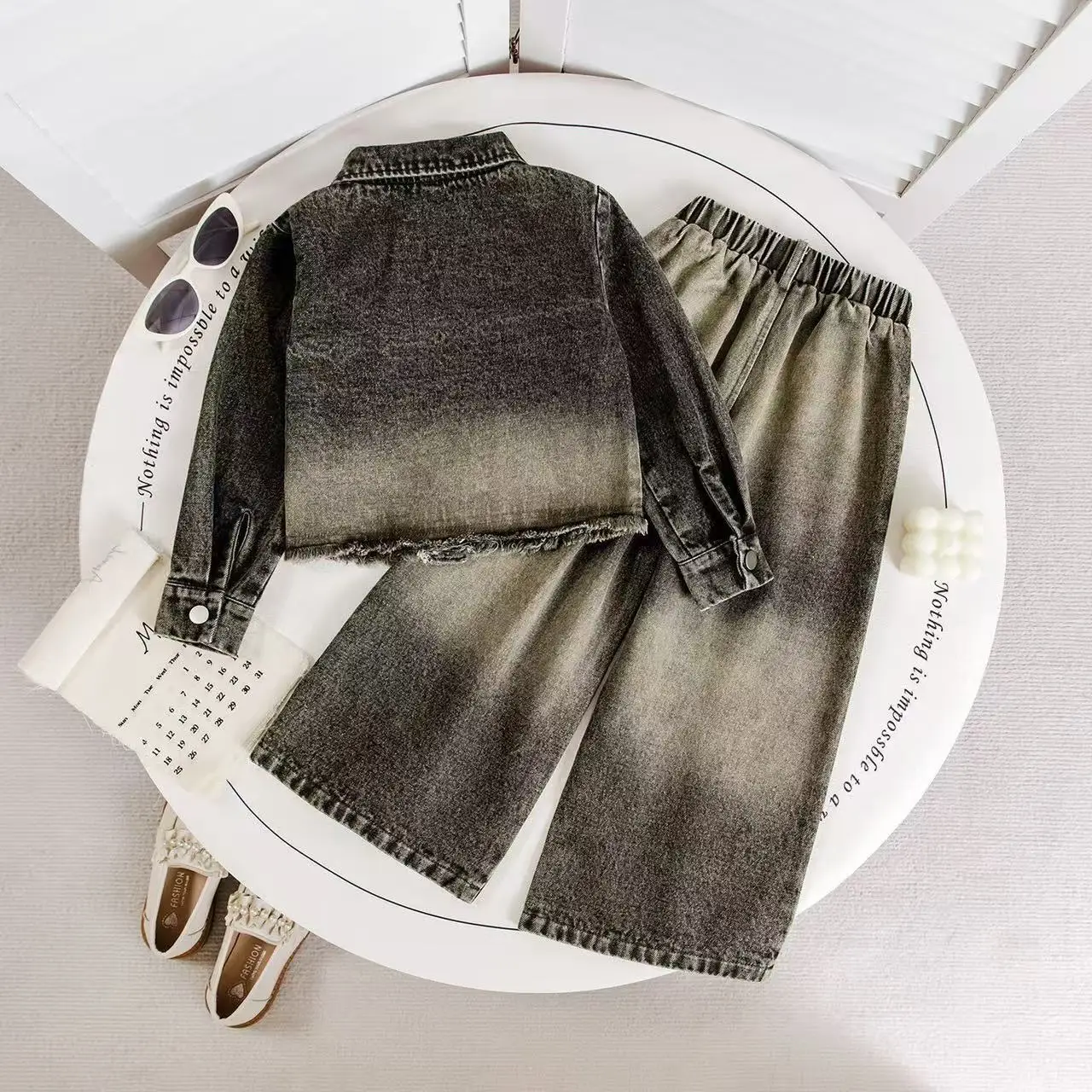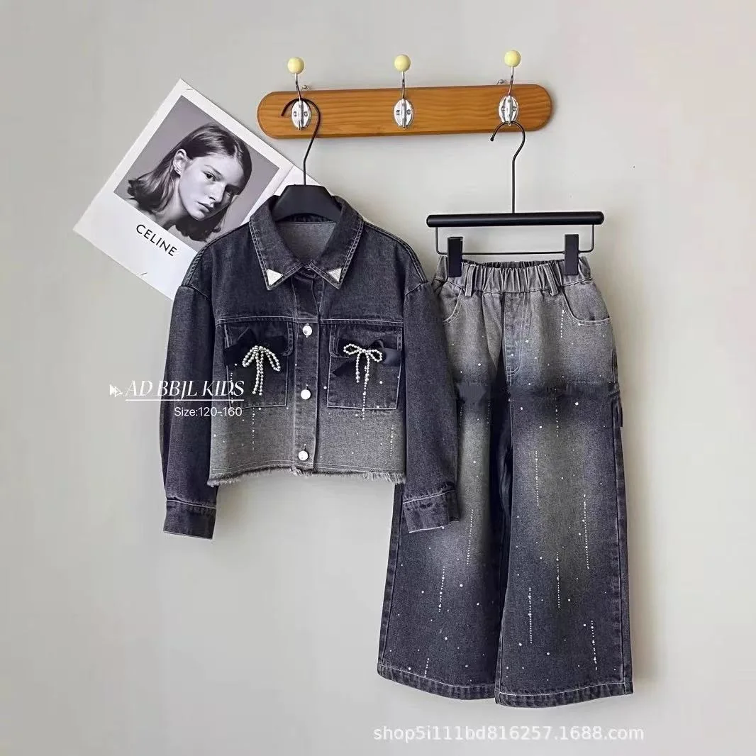 2026 Autumn Kids Girl Clothing European American Retro Denim Suit Long Sleeve High Quality Two-piece Children's Clothes
