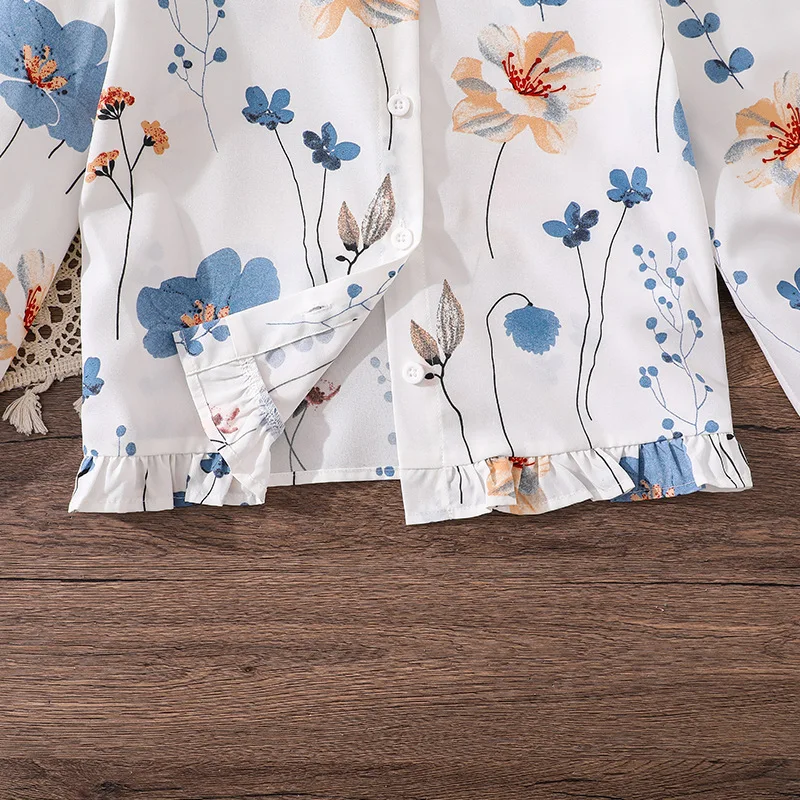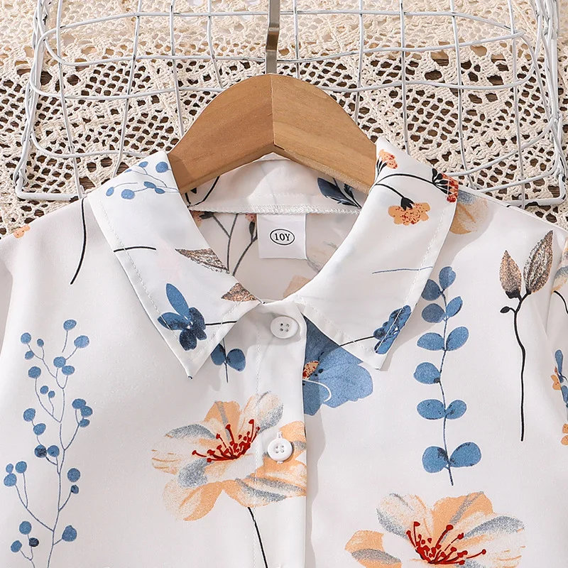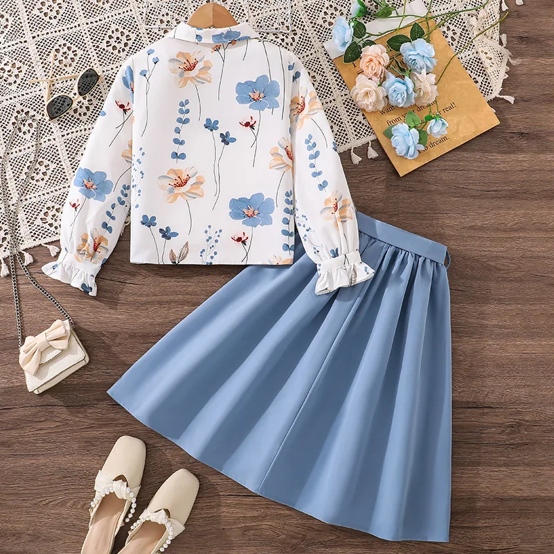 Children 2026 Autumn Holiday Casual Teenage Girls Clothes Elegant Floral Print Long Sleeve Shirt Skirt Two Piece Kids Clothing