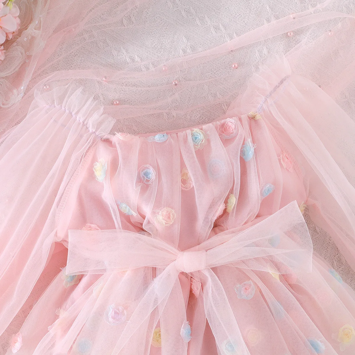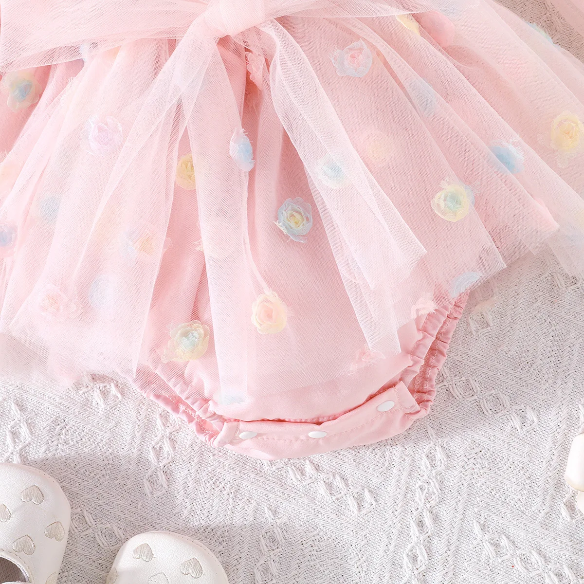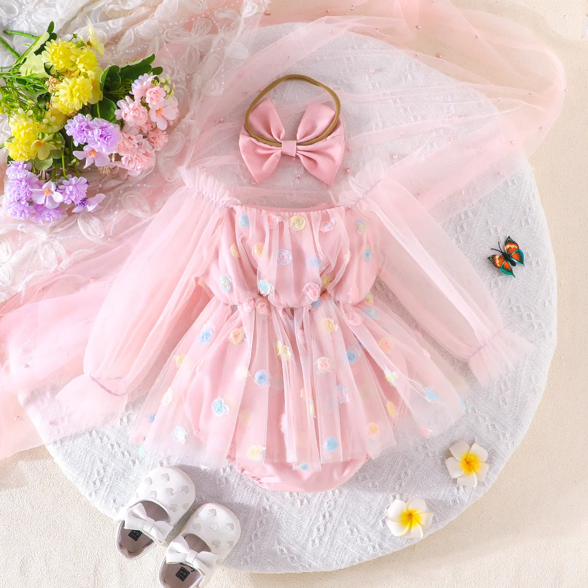 2026 Spring Cute Newborn Outfit Soft Toddler Clothing Floral Embroidery Mesh Long Sleeves Baby Girl Romper
