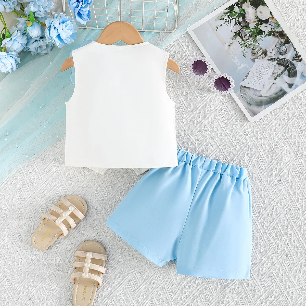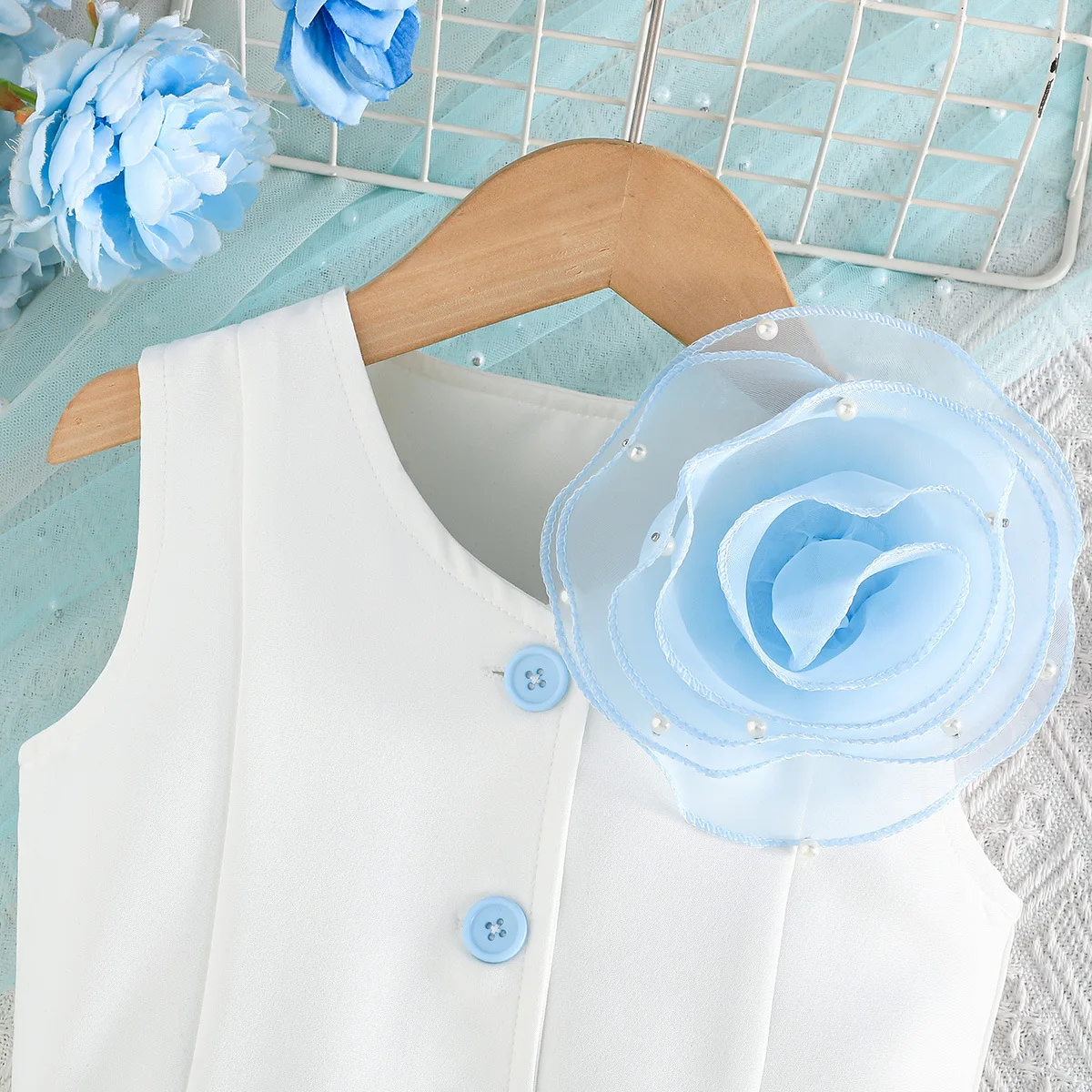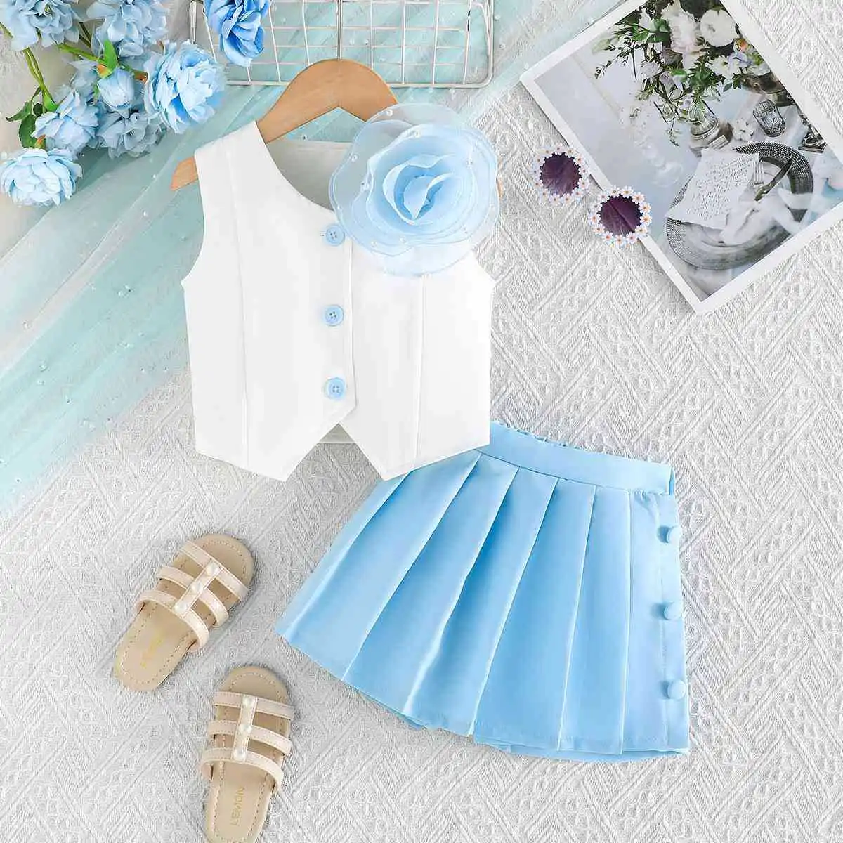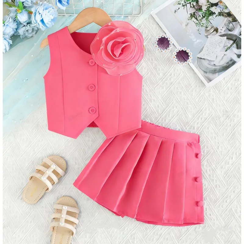 2026 Wholesale Summer Children Fashion Clothes 3D Flower Sleeveless Vest Pleated Skirt Shorts 2pcs Kids Clothing Sets for Girls