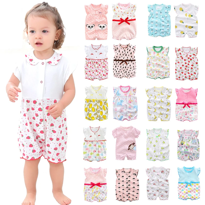Wholesale Baby Summer Clothes Ruffle Short Sleeve Baby Bodysuit Jumpsuit New Born Cute Cartoon Bubble Baby Rompers for Girl