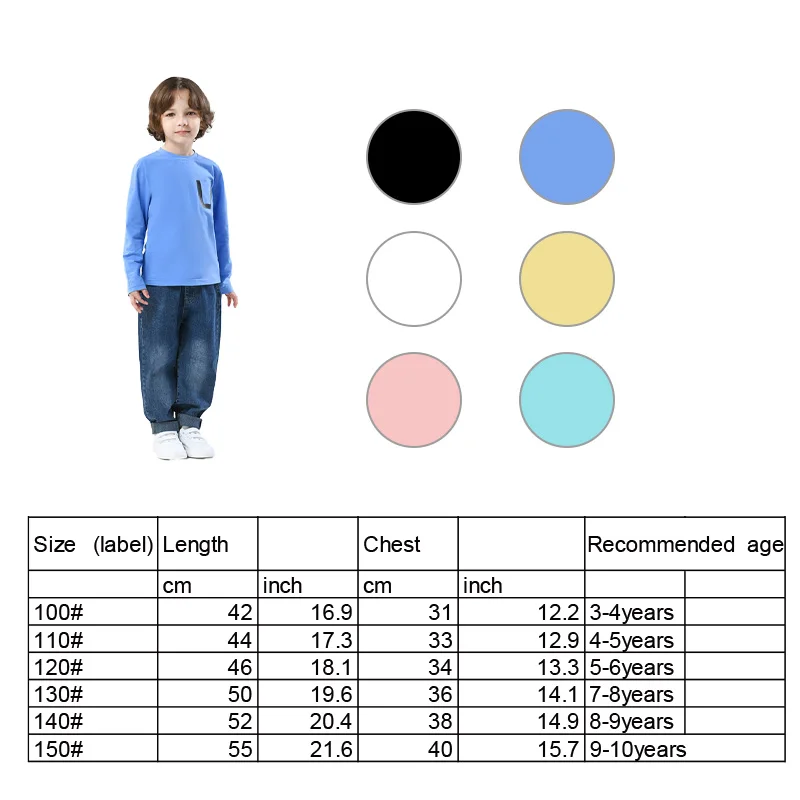 Children's Long Sleeve Top Apparel Customizable 230g Cotton Basic Shirt Layering Tee Plain Colors OEM