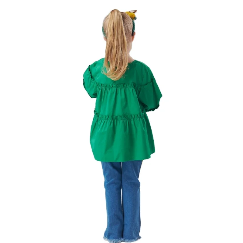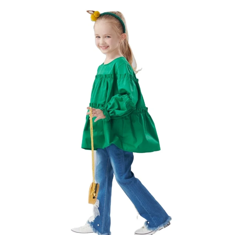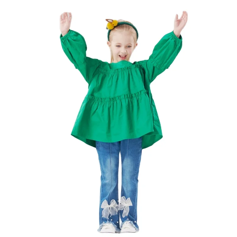 Girls Fashion Korean-Clothes Ruffled Princess Bottoming Long Sleeve Shirt Bell Bottoms Jeans 2 Piece Girls Clothing Sets