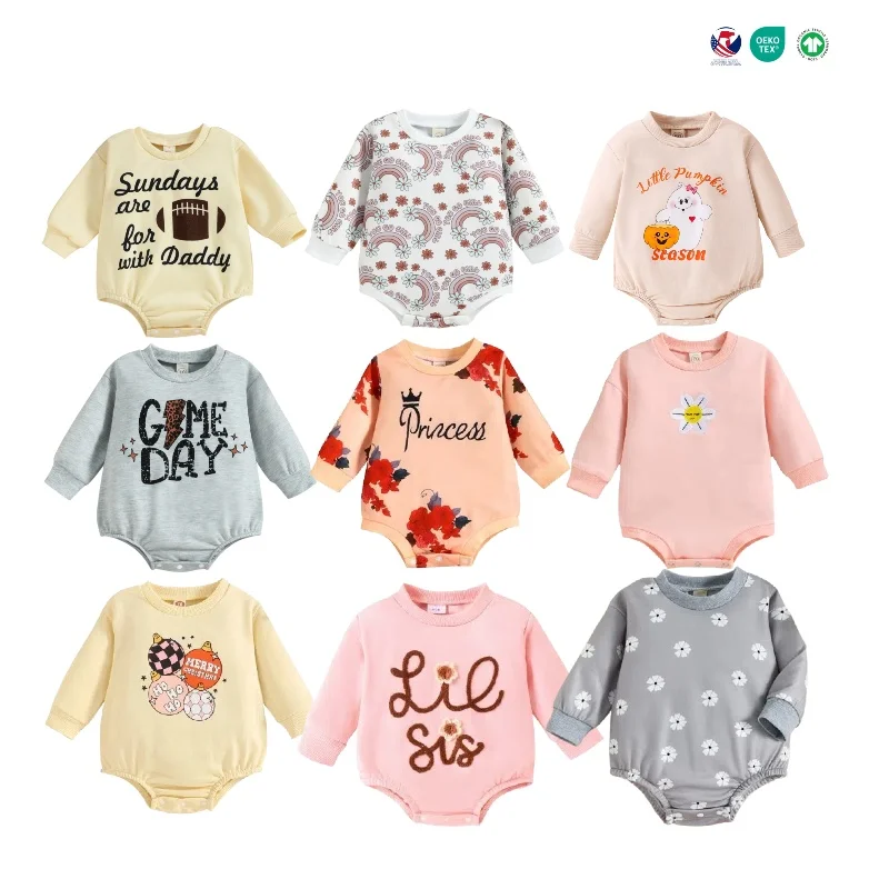 Baby Clothes Wholesale Long Sleeved Printed Jumpsuit Casual Baby Rompers