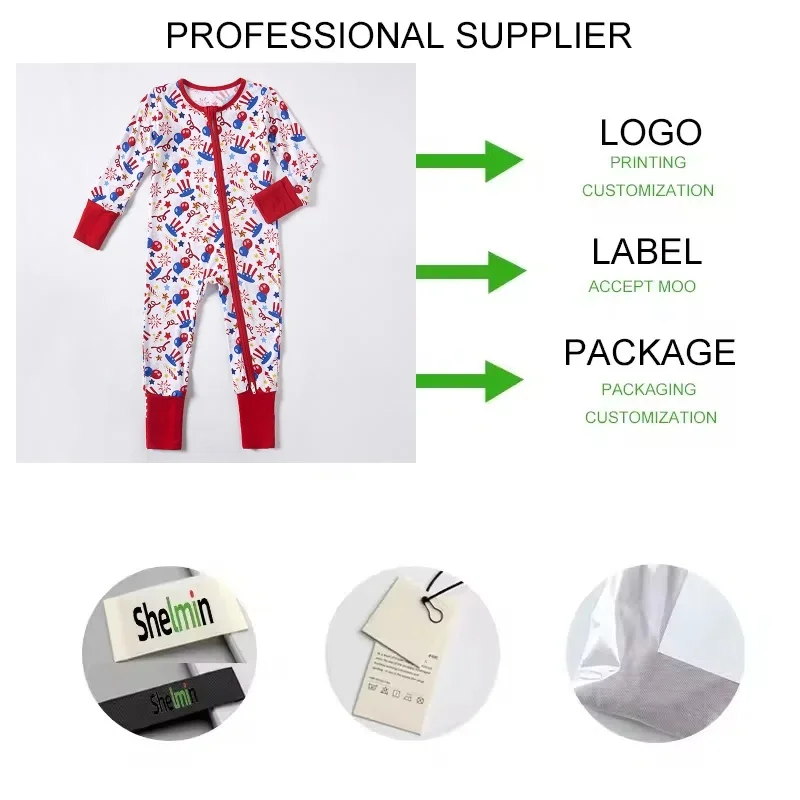 Wholesale Bamboo Baby Clothes One Pieces Playsuits Jumpsuit Double Anti-Slip Zipper Bodysuits Full Print Baby Rompers