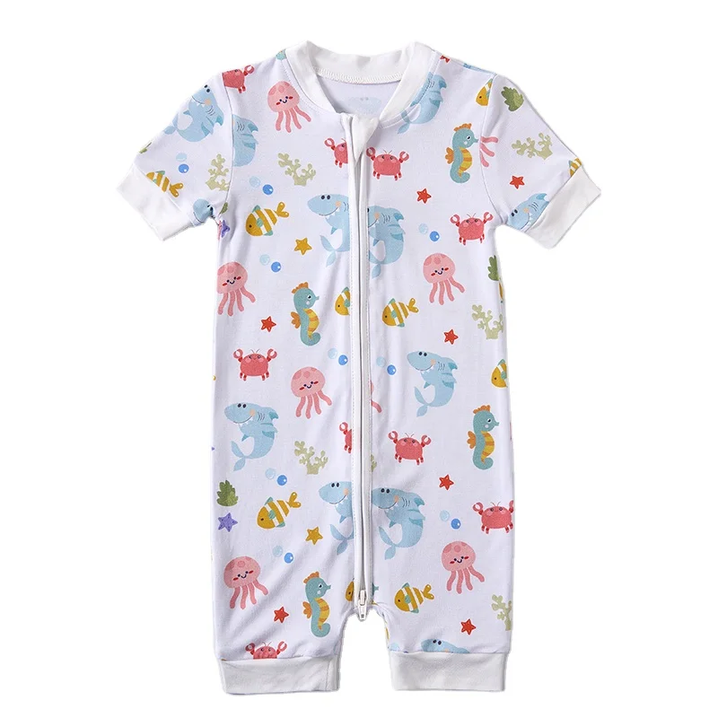 Toddler Rompers One Pieces Playsuits Jumpsuit Bamboo Baby Clothes Pyjamas Double Zipper Bodysuits Full Print Baby Rompers
