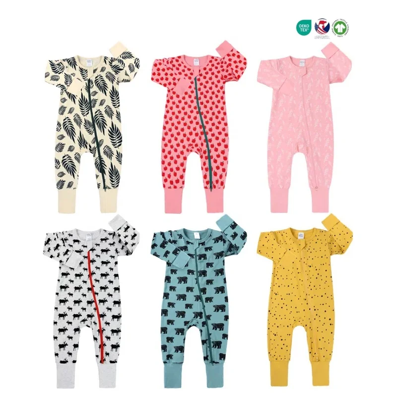 Wholesale One Pieces Baby Clothes Playsuits Jumpsuit Double Anti-Slip Zipper Bodysuits Full Print Baby Rompers
