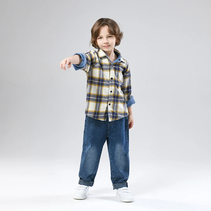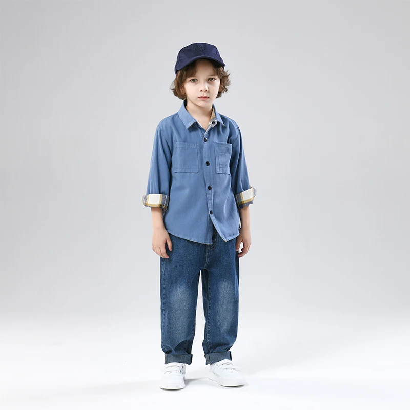 Children's Long Sleeve Top Apparel Customizable Plain Washed Ripped Tee Basic Layering Shirt Multi Colors