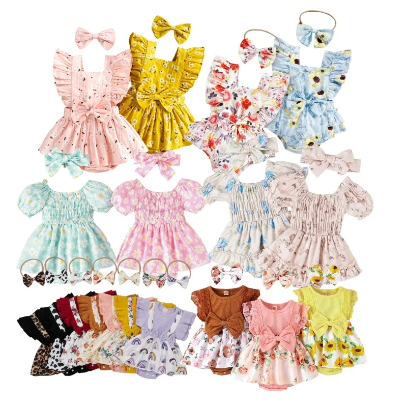 Baby Clothes Wholesale One Pieces Playsuits Jumpsuit Bodysuits 2PCS Baby Item Toddler Girls Clothing Sets Baby Rompers