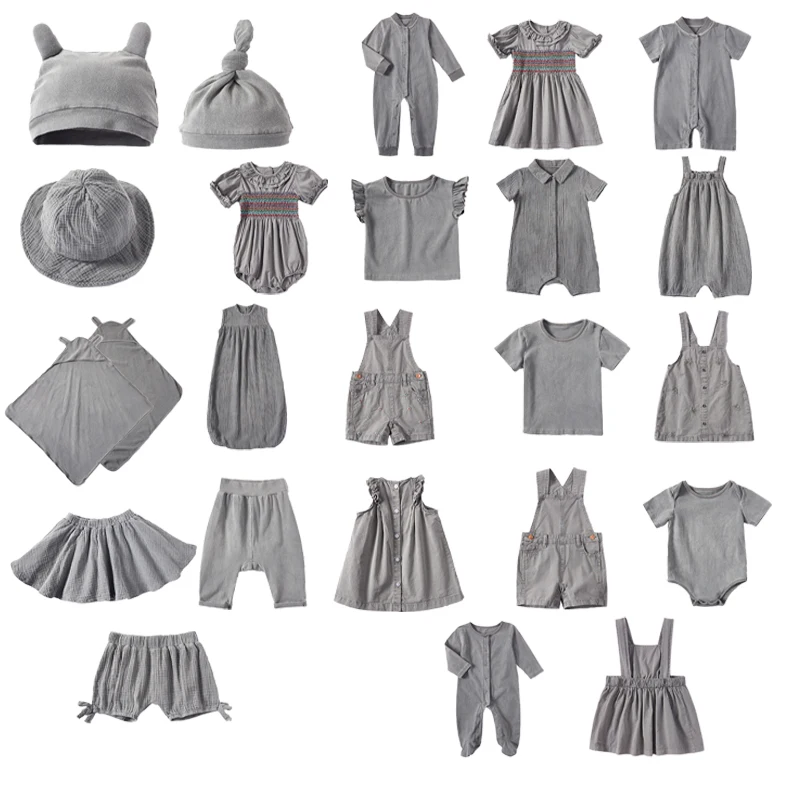 Custom Unisex Baby Item Baby Clothes Wholesale Plant Dye Natural Dye Cotton Rompers Dress Baby Clothing Sets