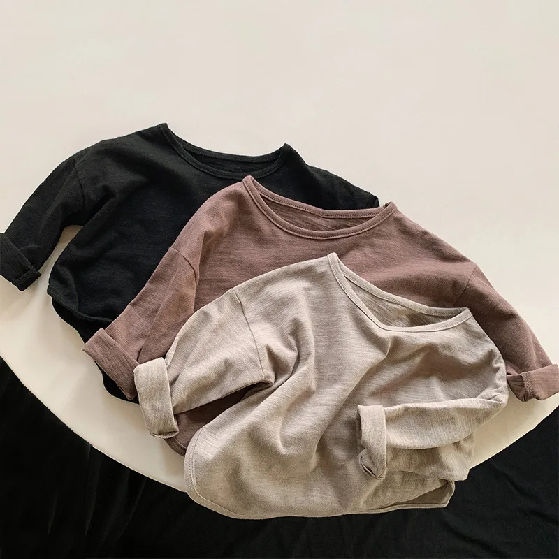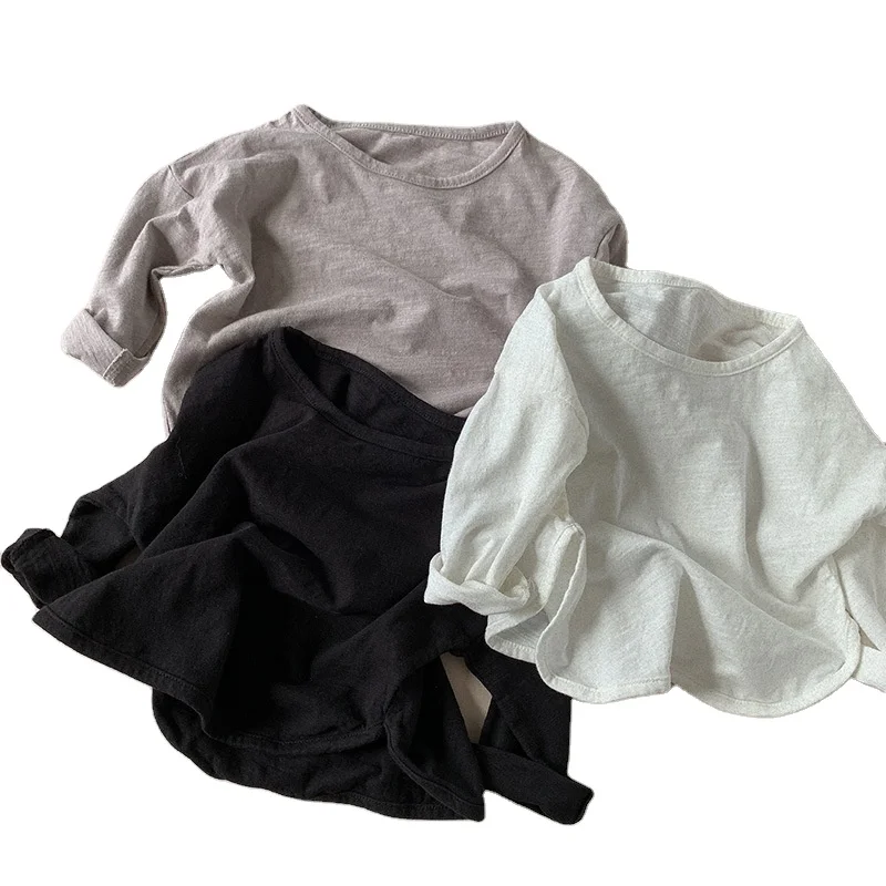 Spring Autumn Unisex T-Shirt New Slub Cotton Long-Sleeved Casual Bottoming Shirt for Girls and Boys