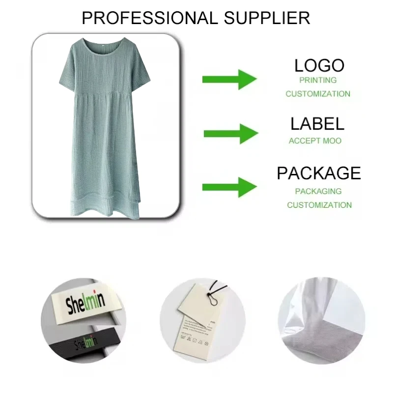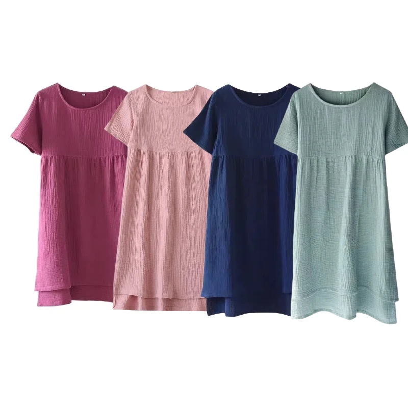 Women's Custom Cotton Summer Nightdress Solid Color Nightgown Crepe Plus Size Soft and Breathable Sleepwear