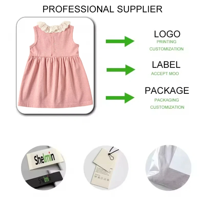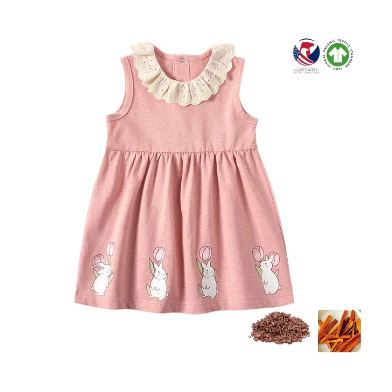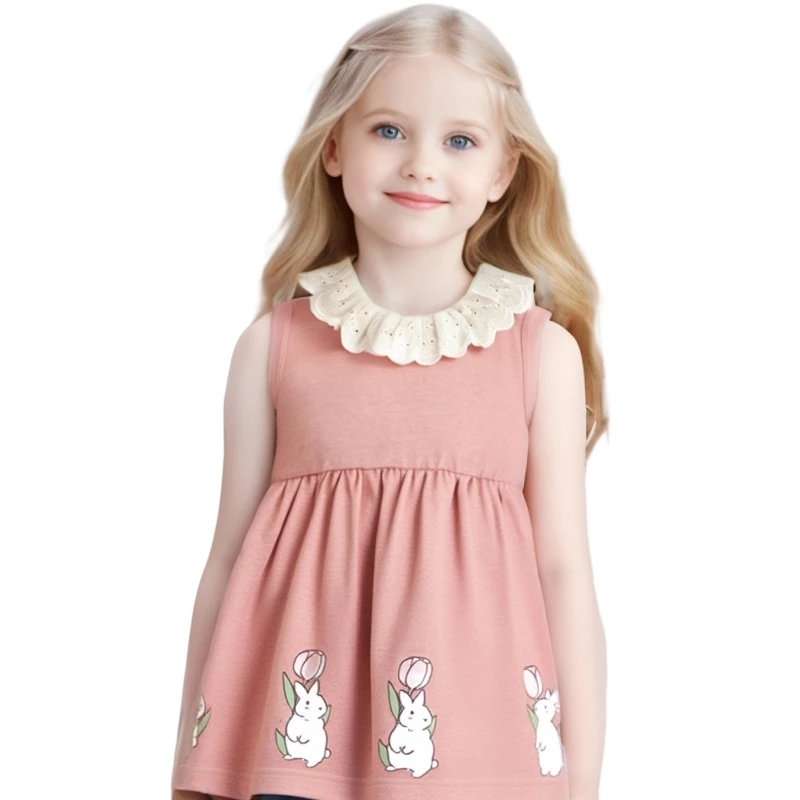 Wholesale Cute Pink Baby Girl Dress Sleeveless with Cartoon Rabbit Print and Ruffle Decoration Natural Plant Dye
