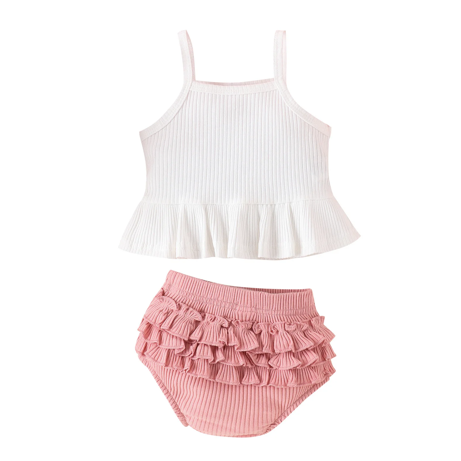 Wholesale Baby Clothing Set Cotton Solid Suspender Top Shorts Two-Piece Outfits for Kids Summer Baby Clothes