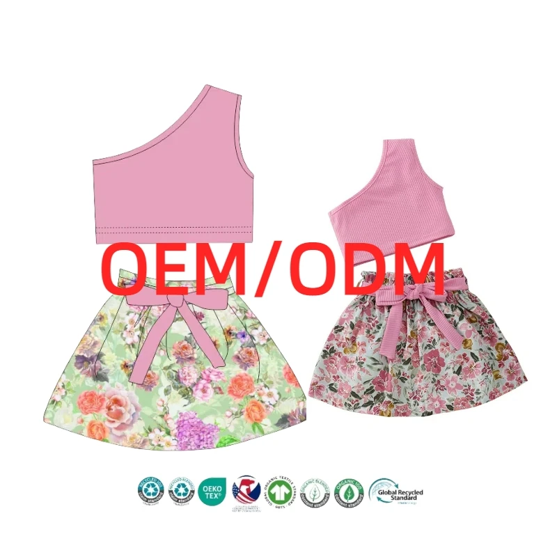 Girls Summer Apparel Set Customizable Cute Top and Skirt 3D Embroidery Fashion Outfit for Kids OEM