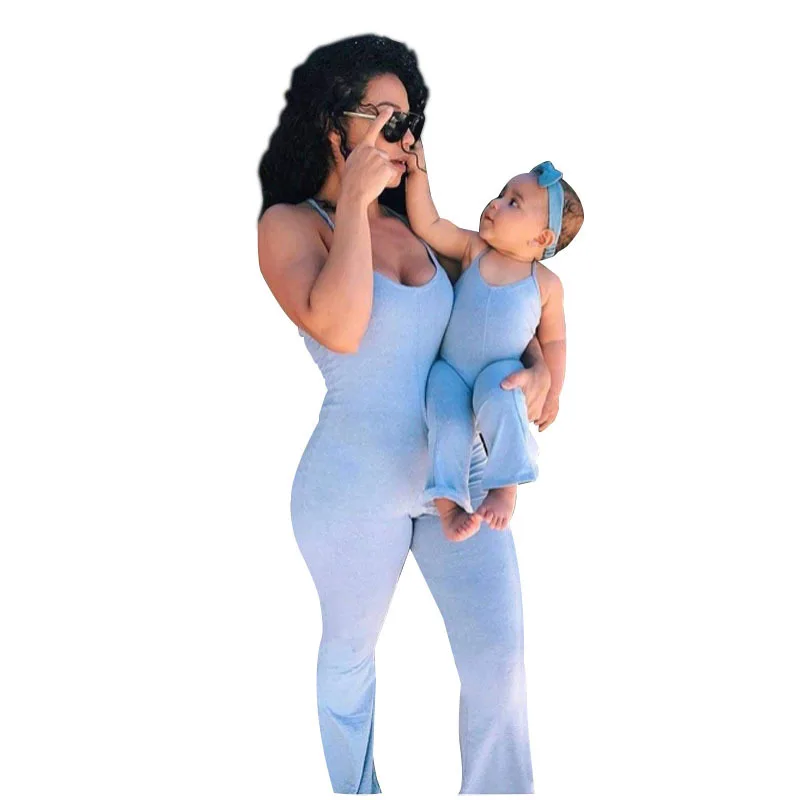 One-Piece Mother Daughter Matching Jumpsuits Family Set Fashion Mom Baby Mommy Me Clothes for Adults Plus Size Overalls Dress