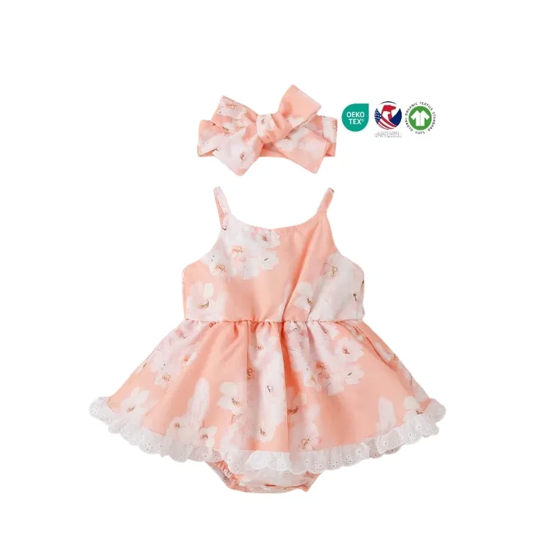 Cotton Floral One-Piece Toddler Romper 2PCS Baby Bodysuits Spring Knitted Playsuits Jumpsuit