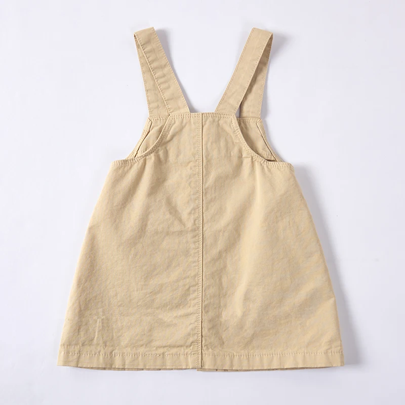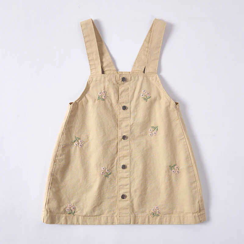 Solid Pattern Girls Dress Wholesale Kids Clothes Button Sleeveless Pinafore Embroidered Print Plant Natural Dye for Children