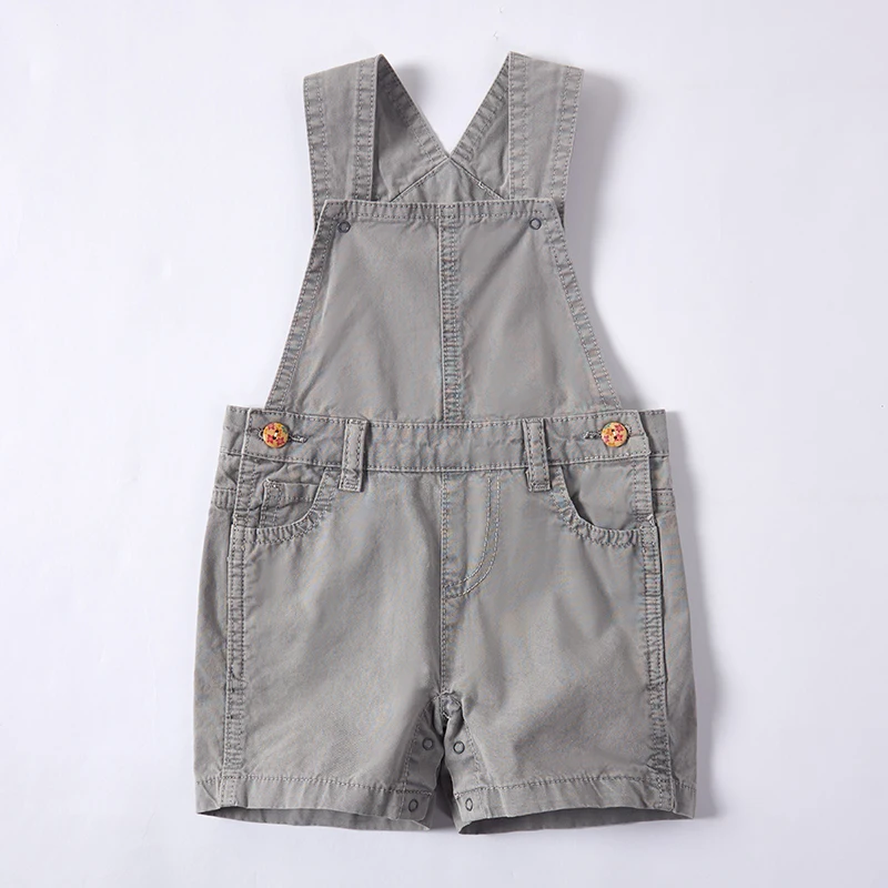 Unisex Pure Cotton Gray Jumpsuit for Baby Girls Wholesale Natural Plant Dye Floral Pattern Work Clothes Shorts