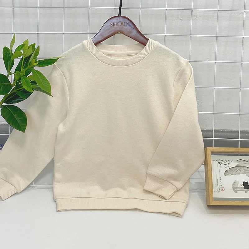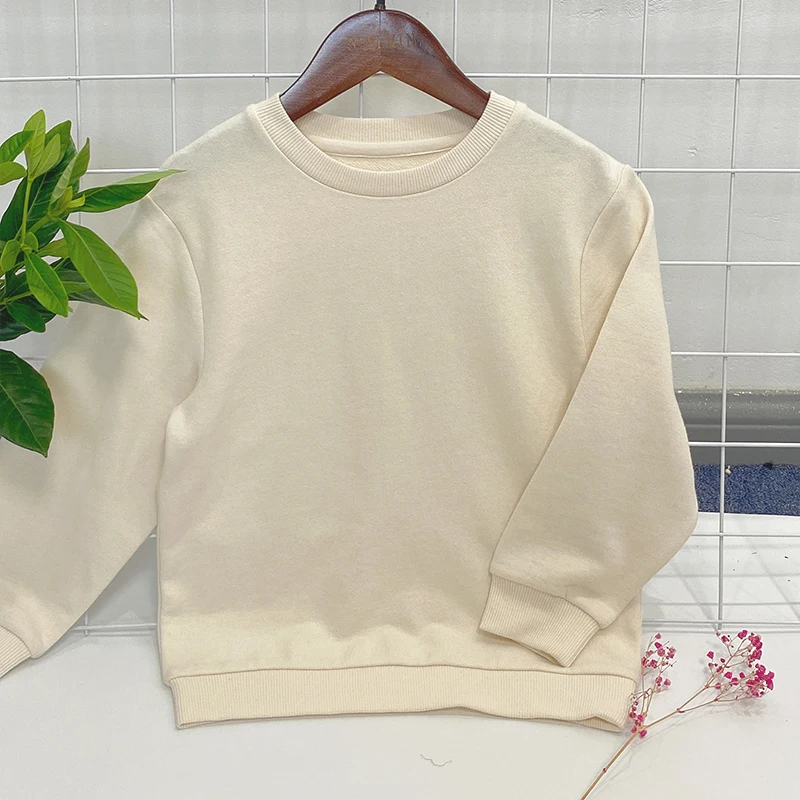 Children's Long Sleeve Top Apparel Customizable 230g Cotton Basic Shirt Layering Tee Plain Colors OEM