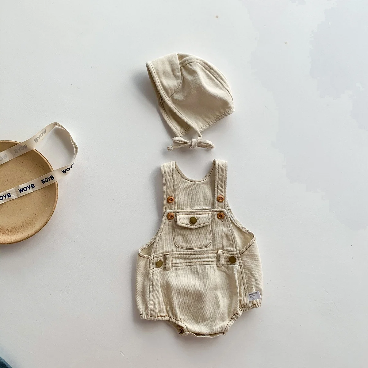 New Ins Summer Collection Casual One-Piece Baby Overalls for Newborns 100% Cotton with Button Closure Including Hat