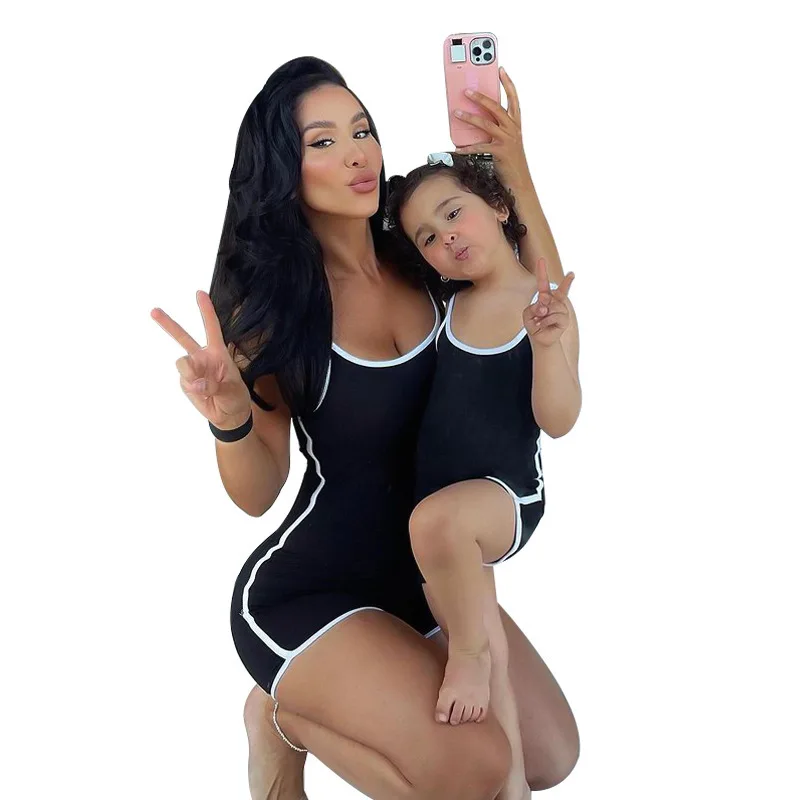 Factory Direct Cute Rompers Dresses Summer Outfits for Women and Girls Mommy and Me Matching Sets Plus Size Family Dress