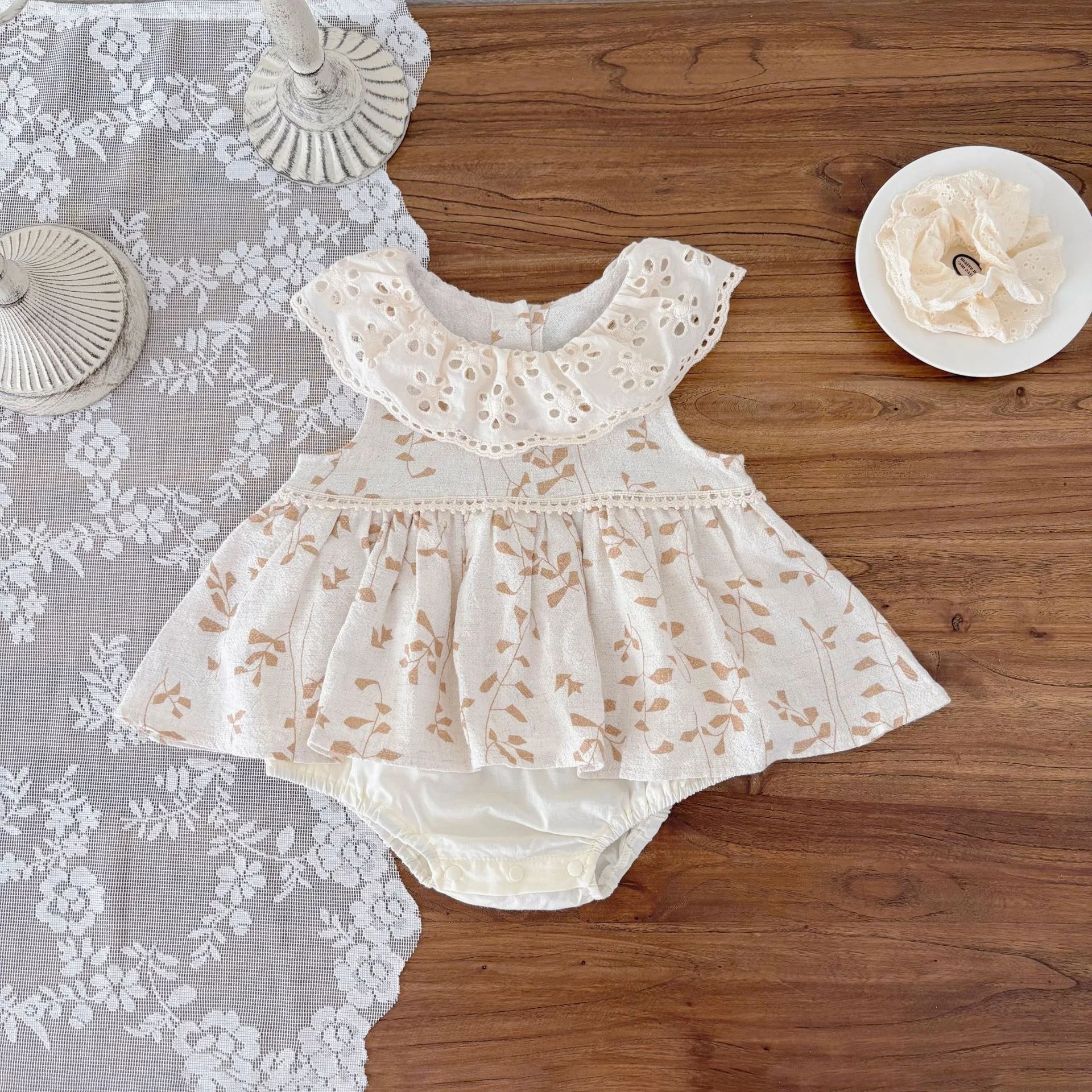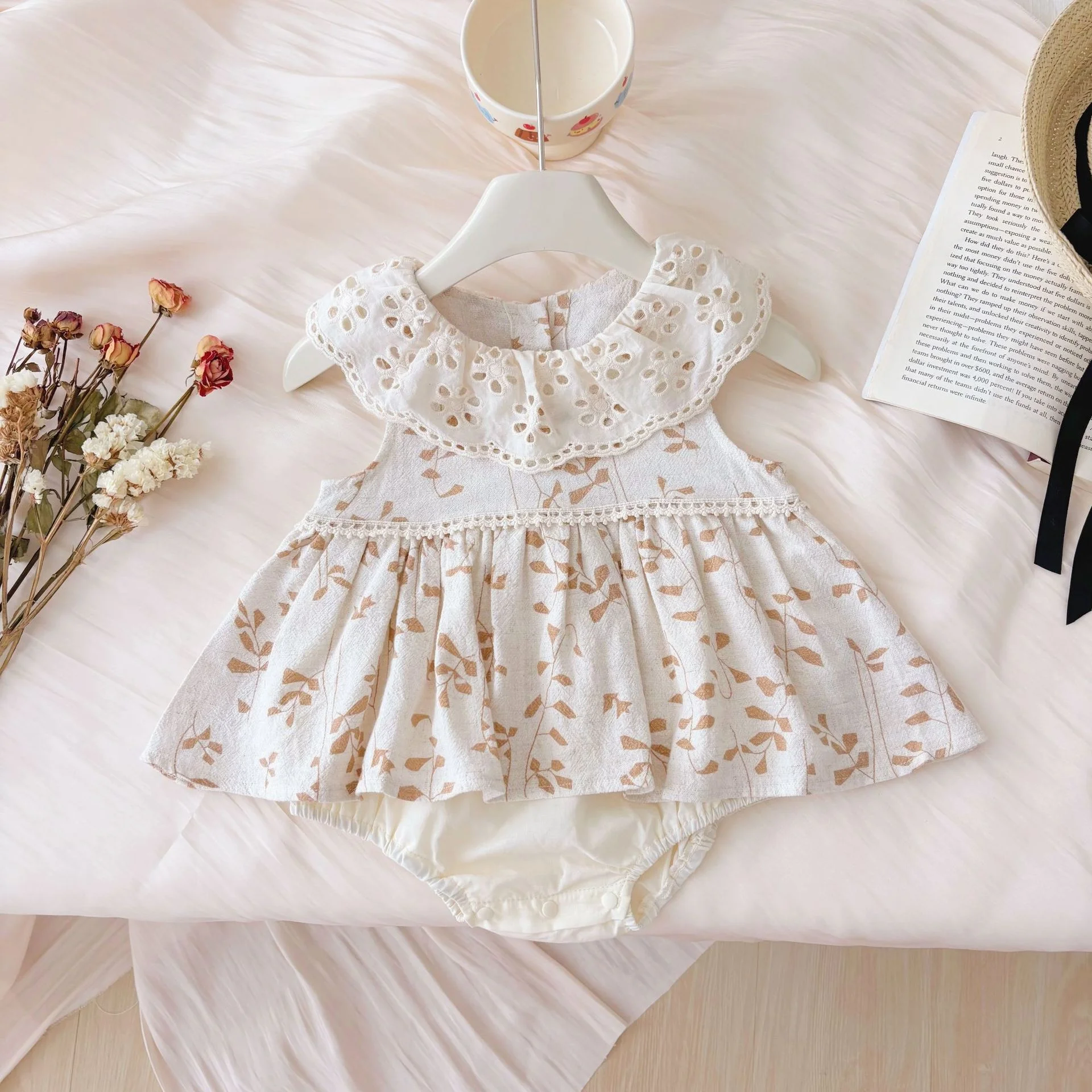 Summer Casual Baby Girl Floral Romper Dress Sweet Sleeveless O-Neck Thin Triangle Bodysuit Baby Romper