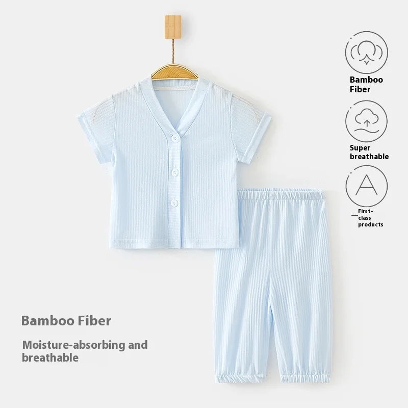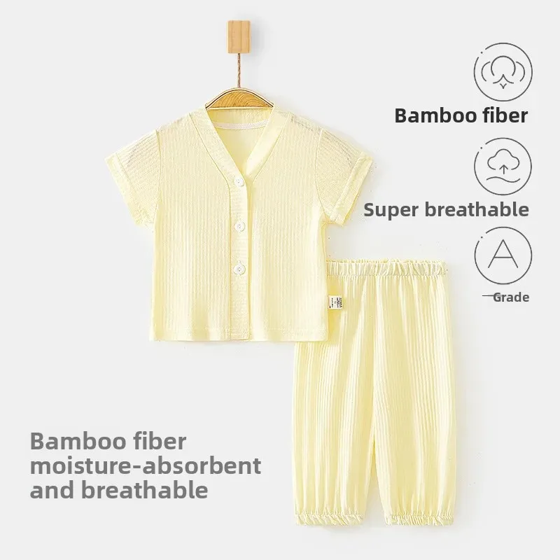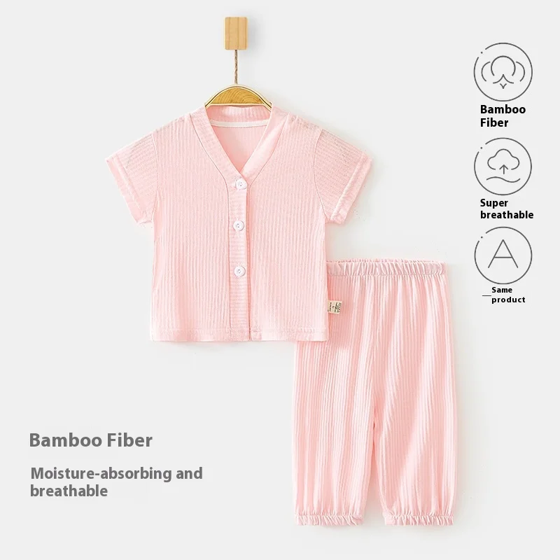 Bamboo Baby Clothes Summer Casual Short-Sleeved T-Shirt and Cropped Pants Toddler Girls Clothing Sets