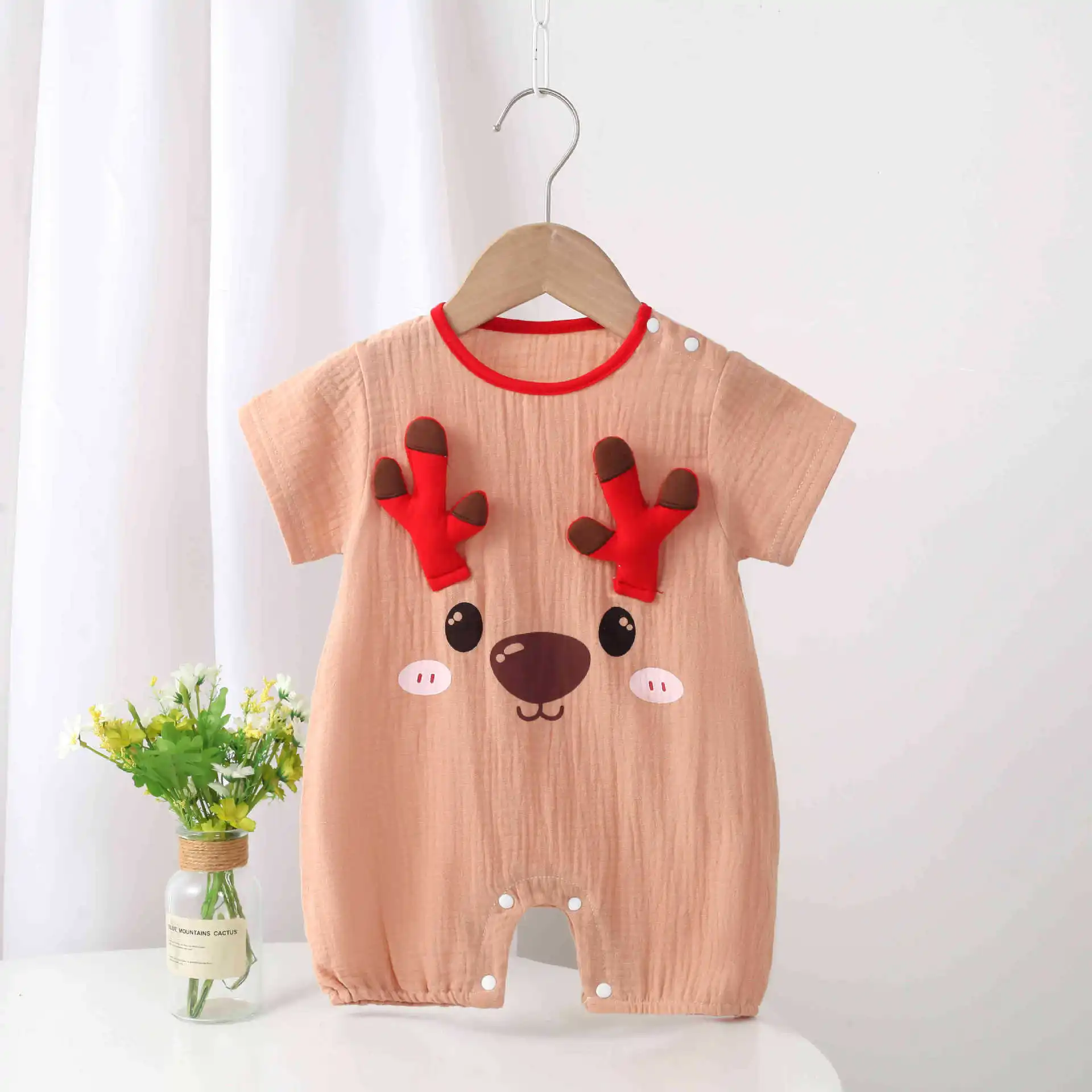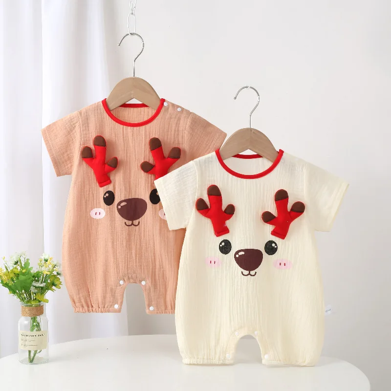 Muslin Baby Clothes One-Piece Short Sleeve Outfit Cute Animal 100% Cotton Baby Rompers