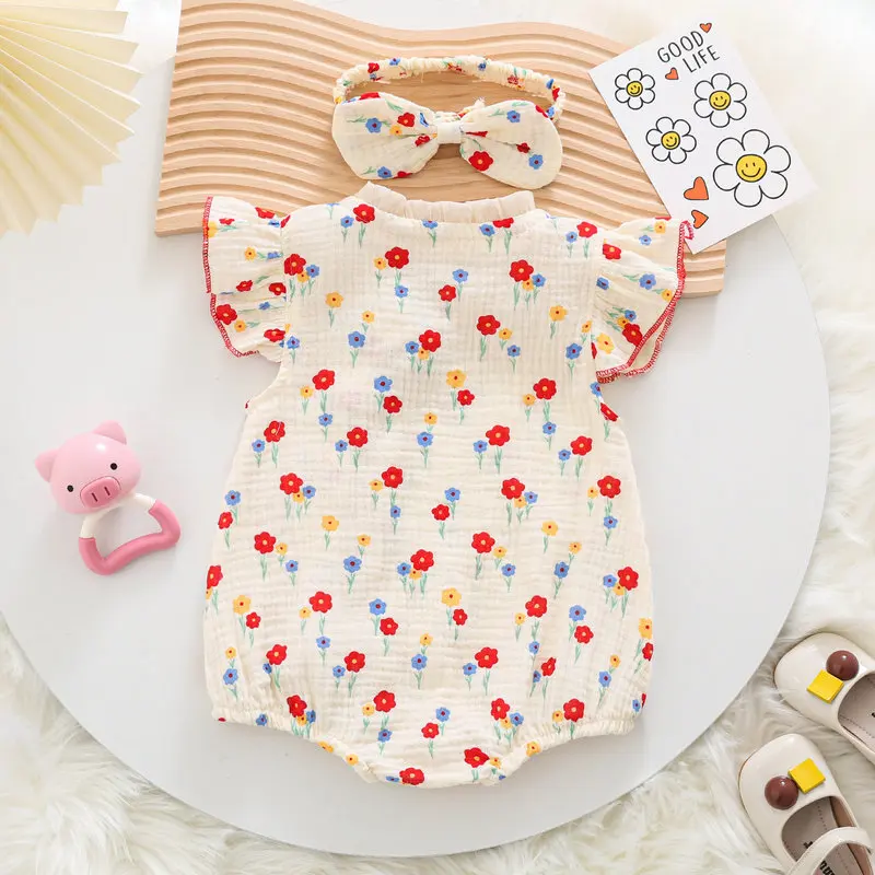 Muslin Baby Clothes Casual Gauze Cotton One-Piece Short-Sleeved Princess Baby Rompers