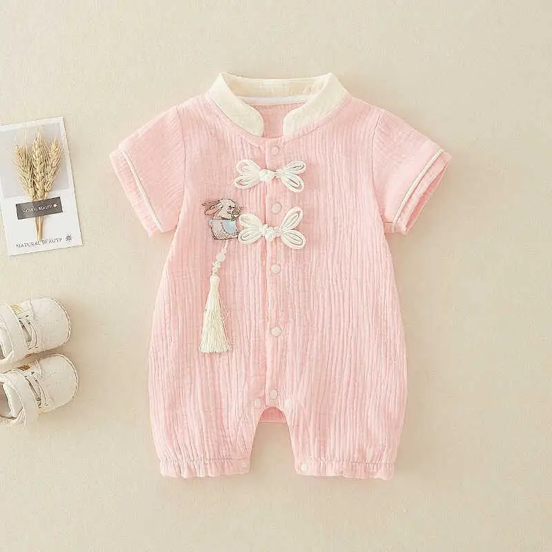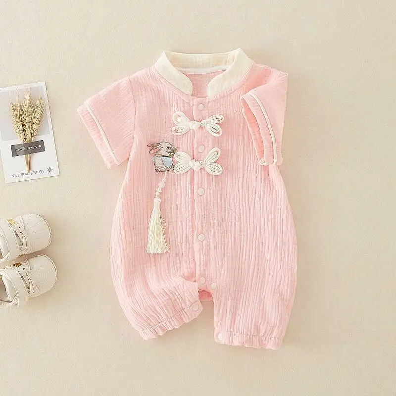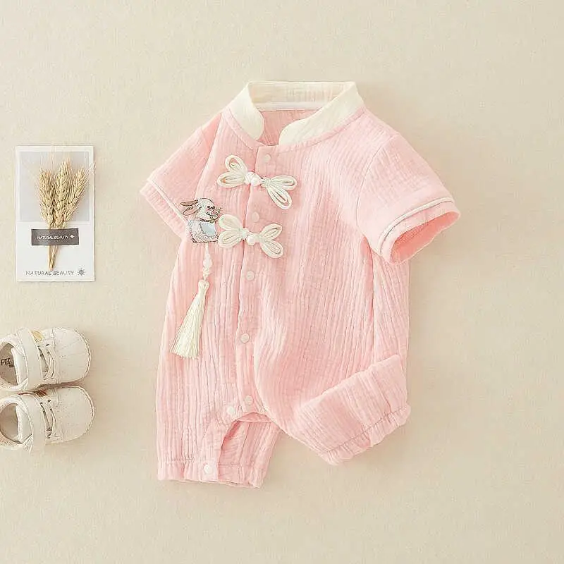 Muslin Baby Clothes Cute One-Piece Outfit with Thin Short Sleeves Baby Rompers