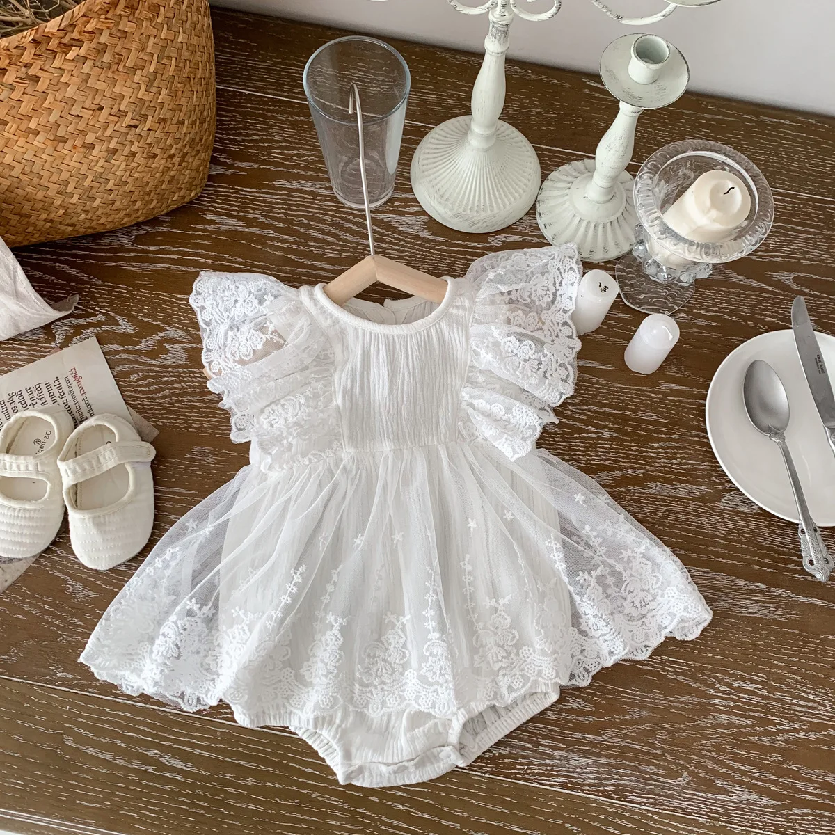 Muslin Baby Clothes Pure Cotton One-Piece Harem Dress with Lace Embroidered Princess Mesh New Summer Casual Styles Baby Rompers