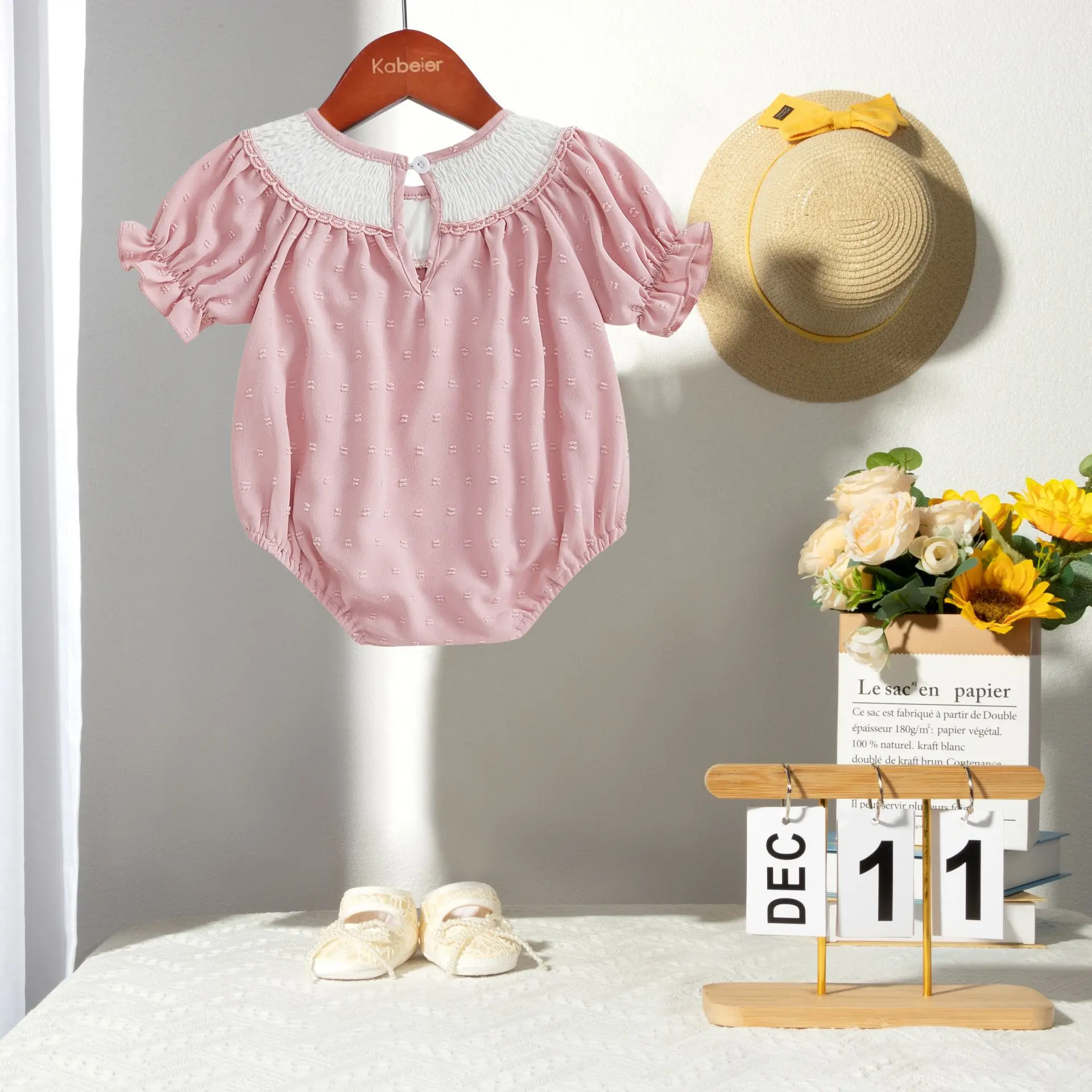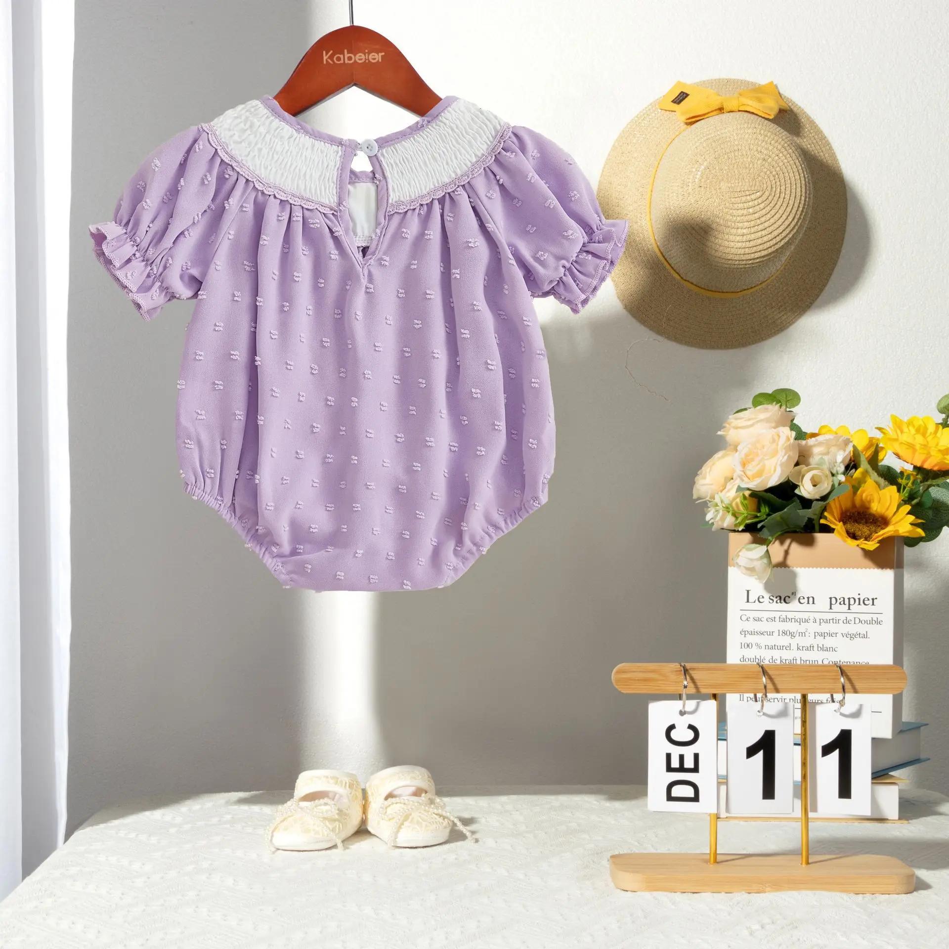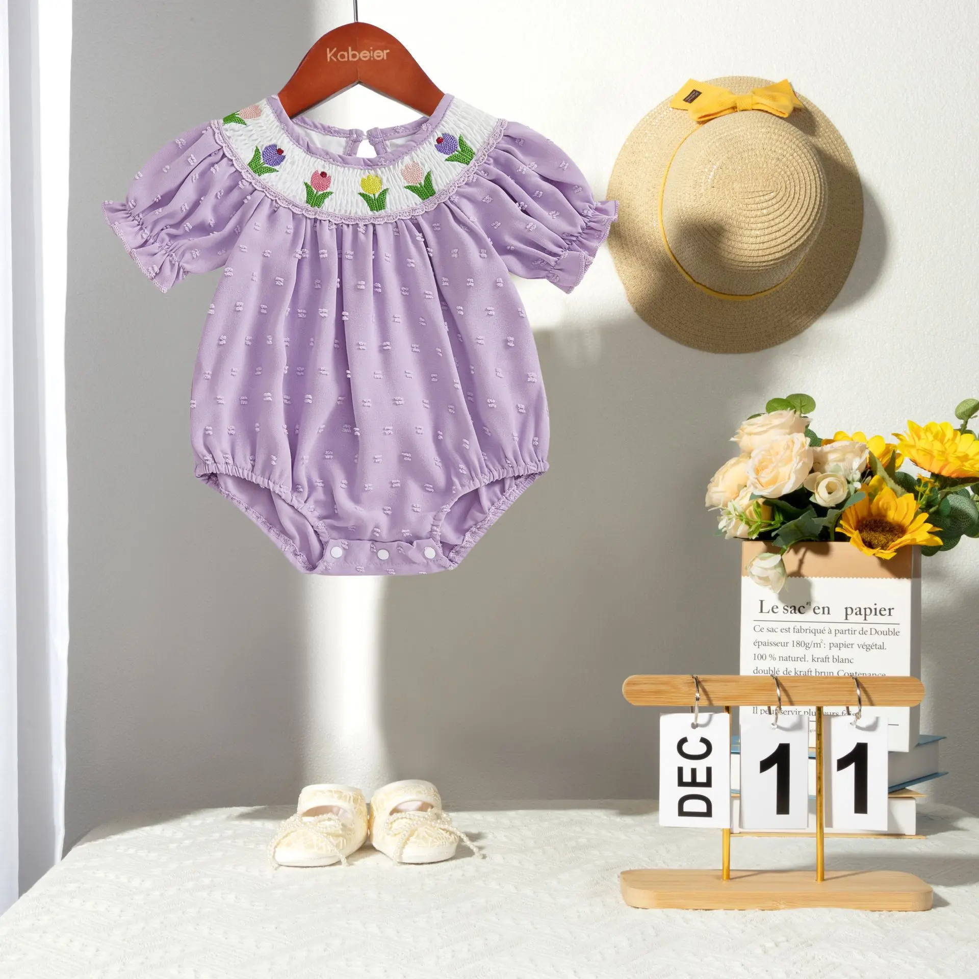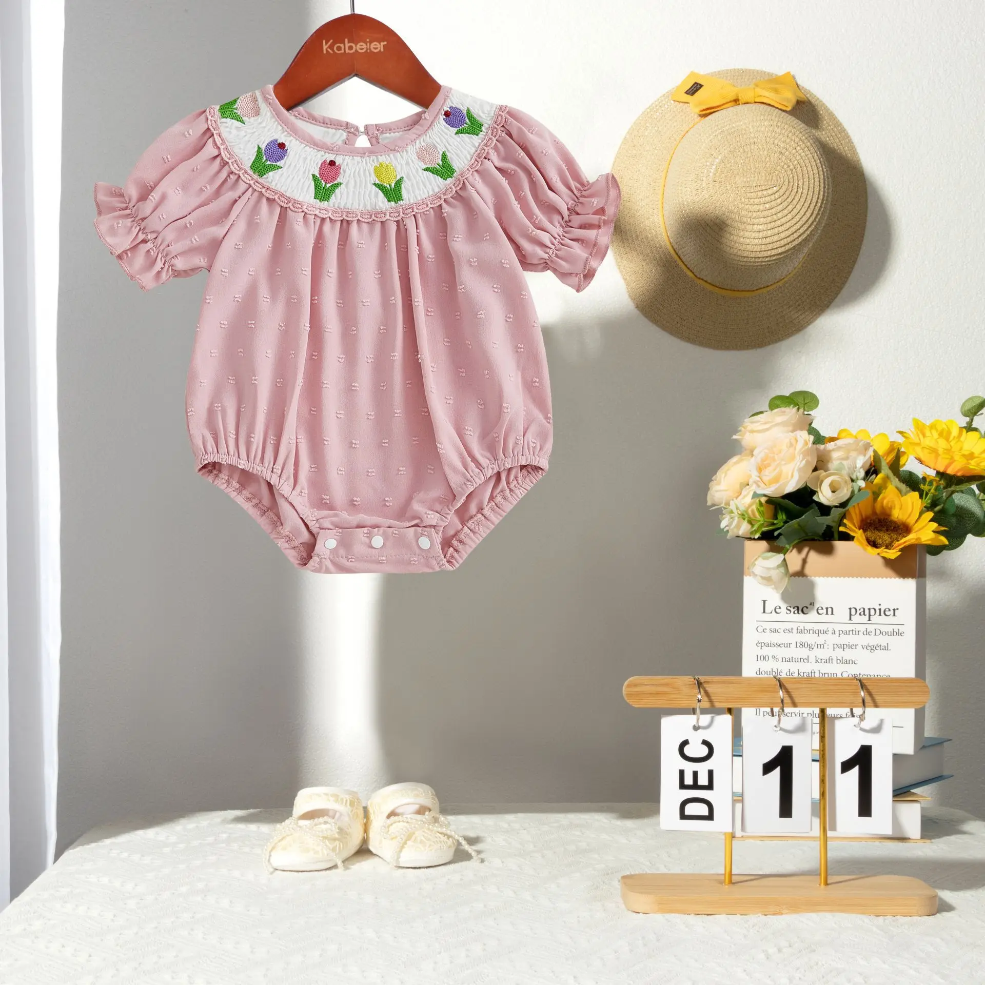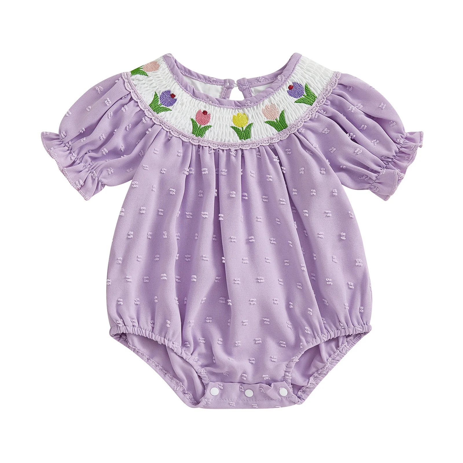 Custom Baby Clothes Shirred Smocked Baby Clothing One-Piece Jumpsuit Flower Embroidered Baby Romper