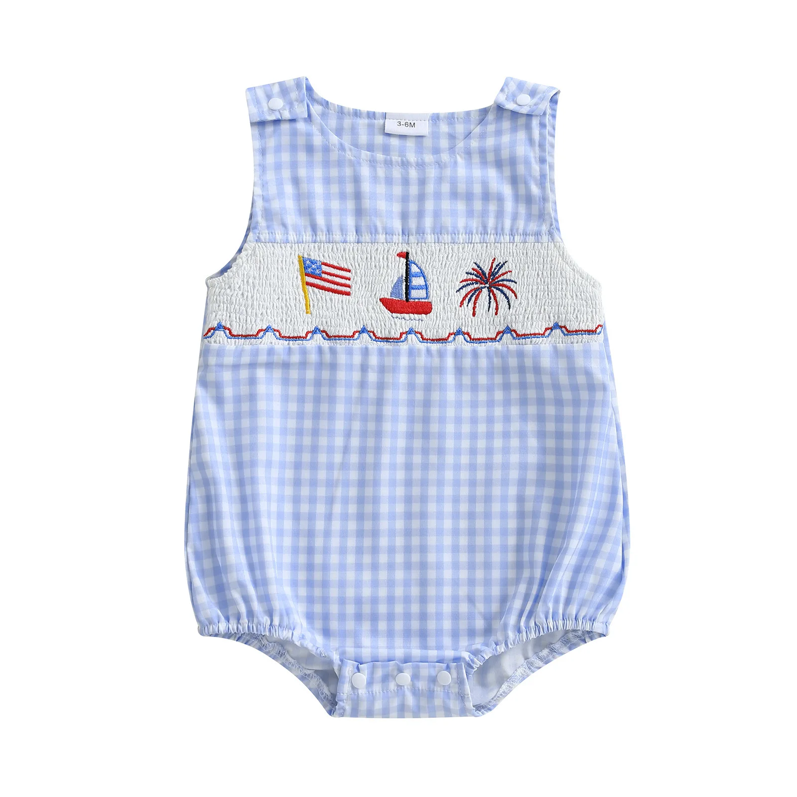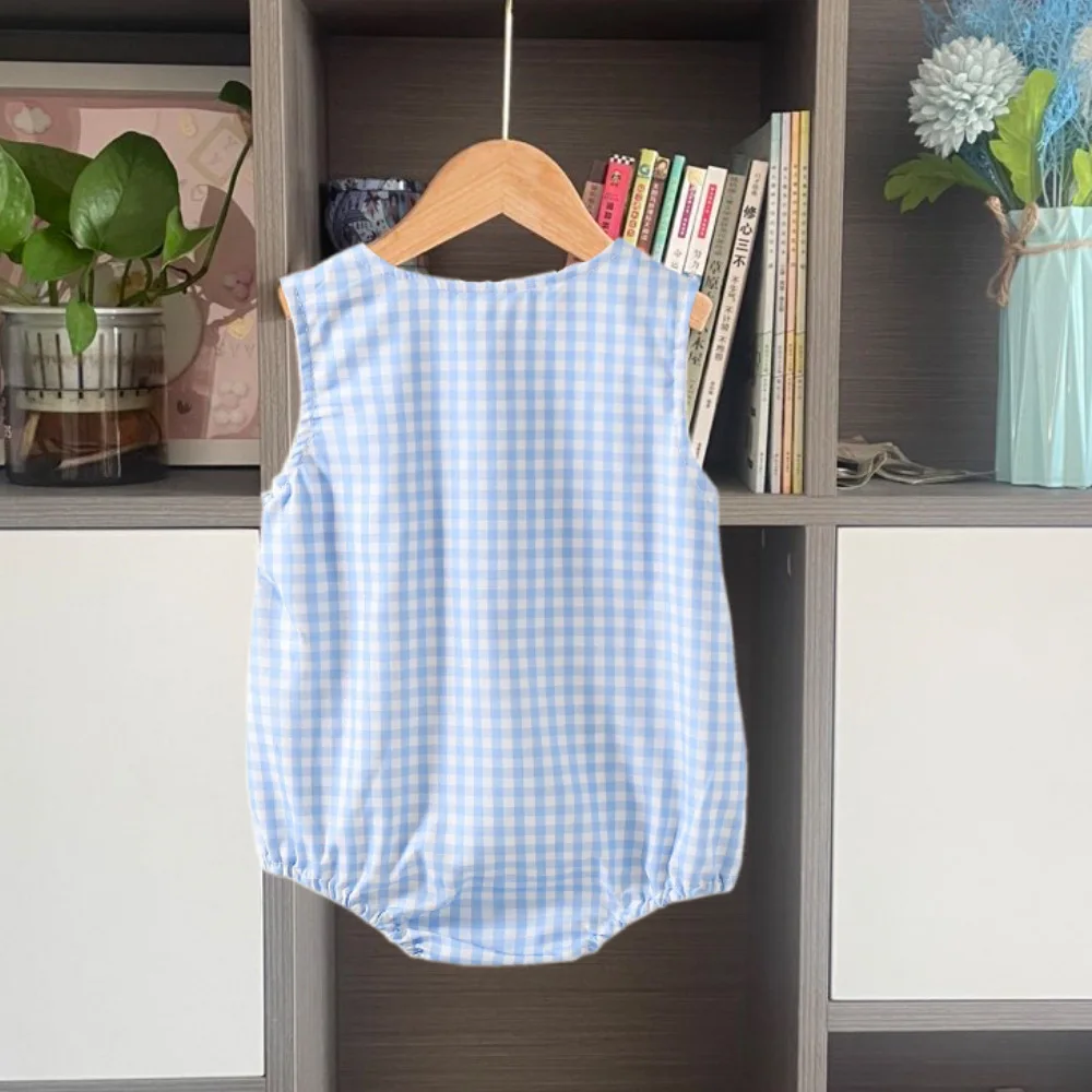 Custom Cute Casual Summer Baby Romper Shirred Smocked Embroidered Button Closure Jumpsuit Vest ODM