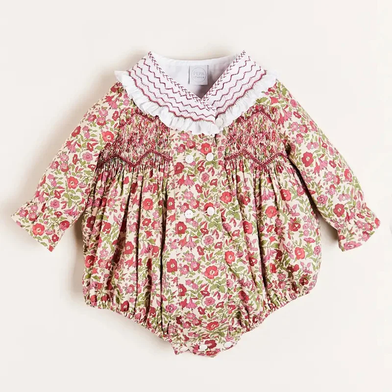 Custom Baby Clothes Shirred Smocked Baby Clothing Floral Embroidered Casual Baby Rompers
