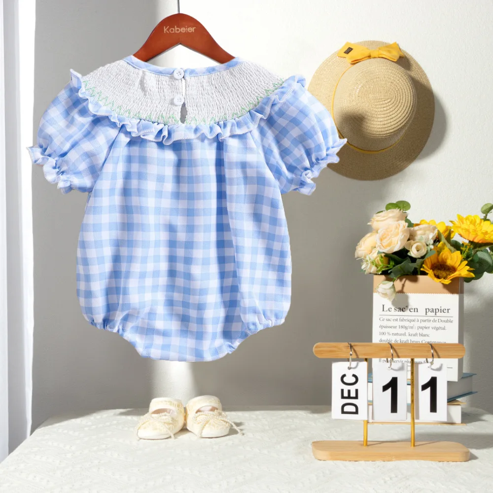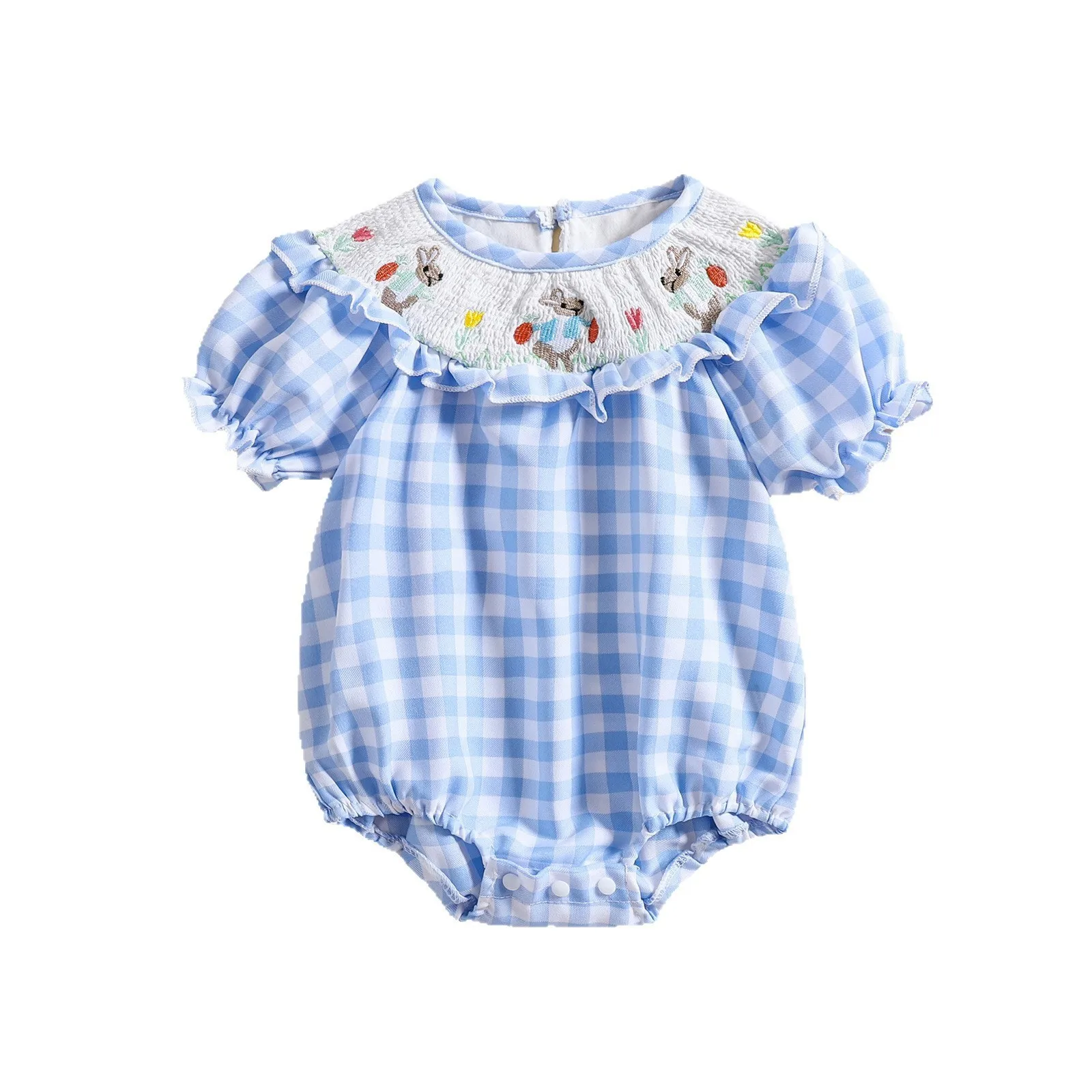 Custom Baby Clothes Shirred Smocked Baby Clothing Casual Embroidered Bunny Baby Rompers