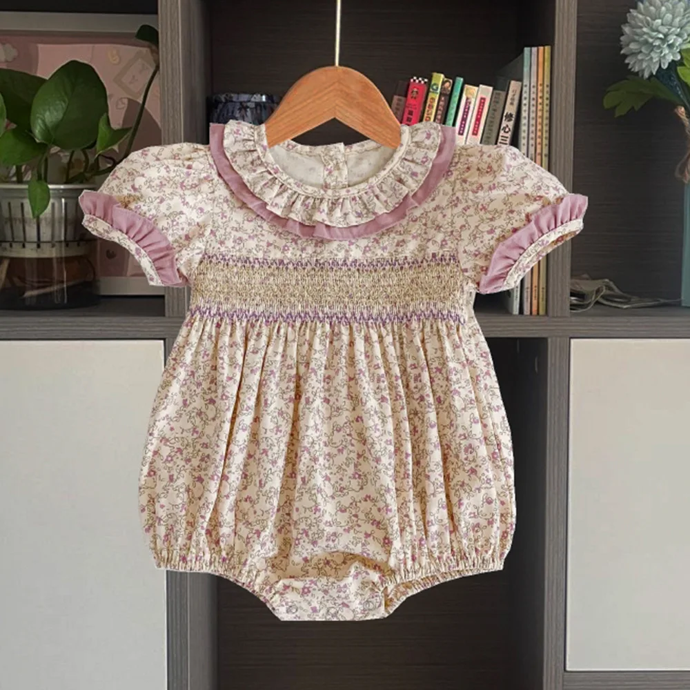 Custom Baby Clothes Shirred Smocked Baby Clothing Girl Outfit Floral Pattern Baby Rompers