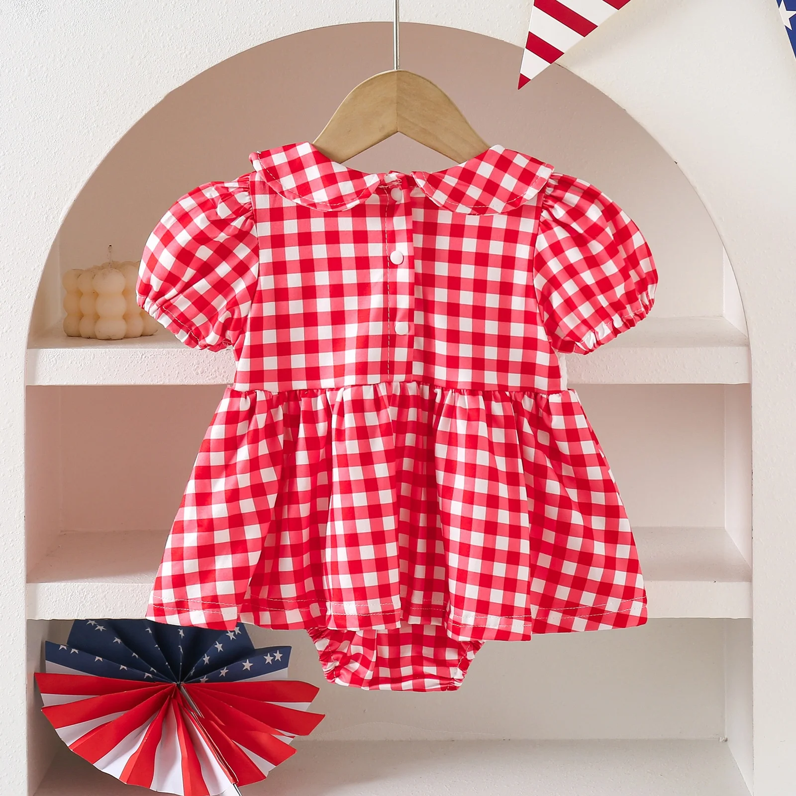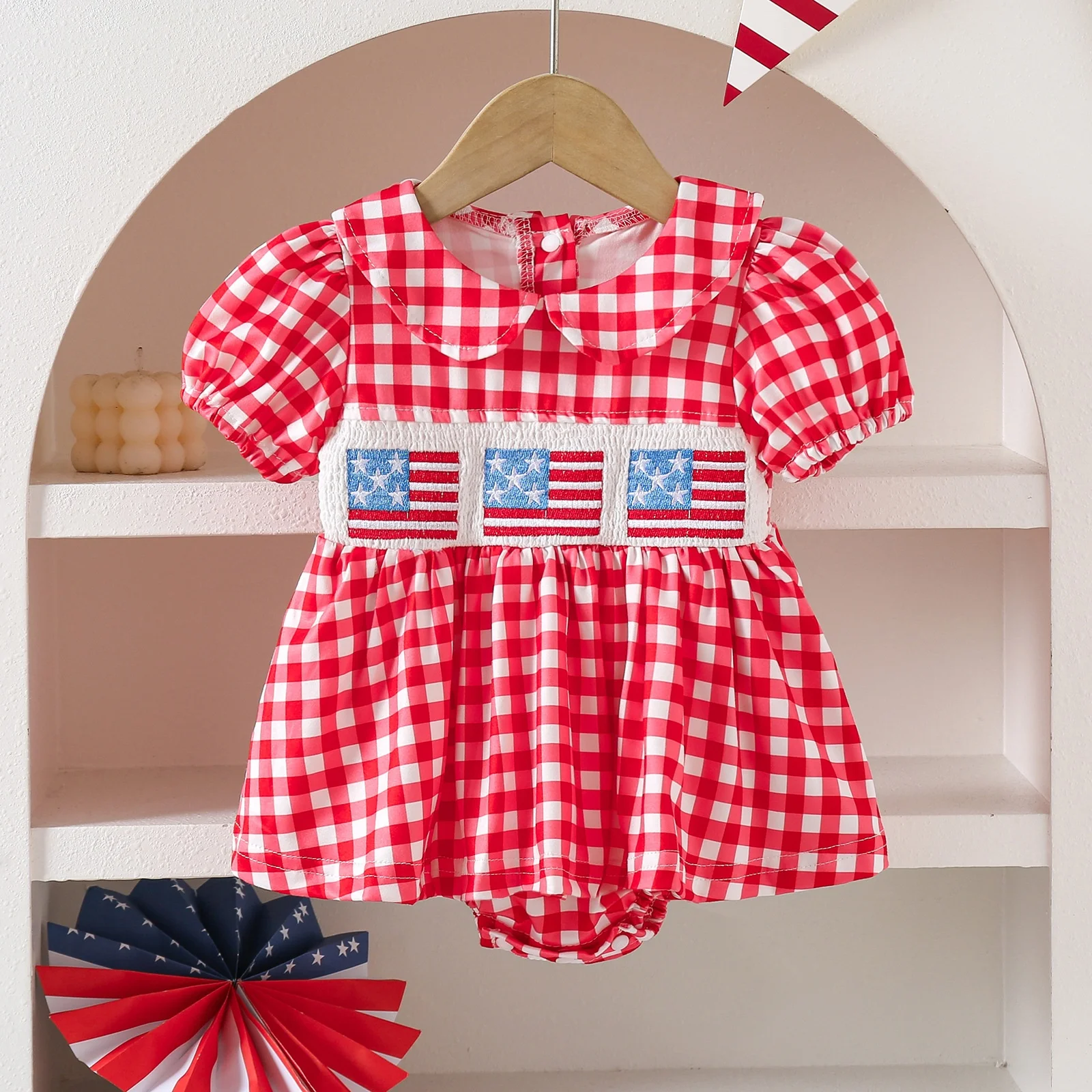 Custom Baby Clothes Shirred Smocked Baby Clothing July 4th Toddler Girl Short Sleeve Casual Baby Rompers