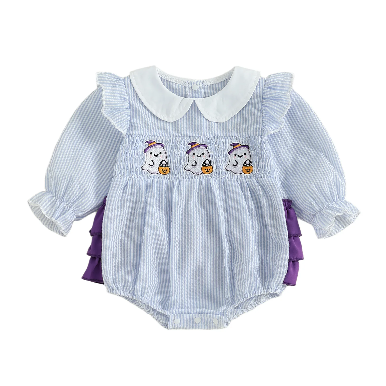 Custom Baby Clothes Shirred Smocked Baby Clothing Casual Outfit Long Sleeve Jumpsuit Baby Rompers
