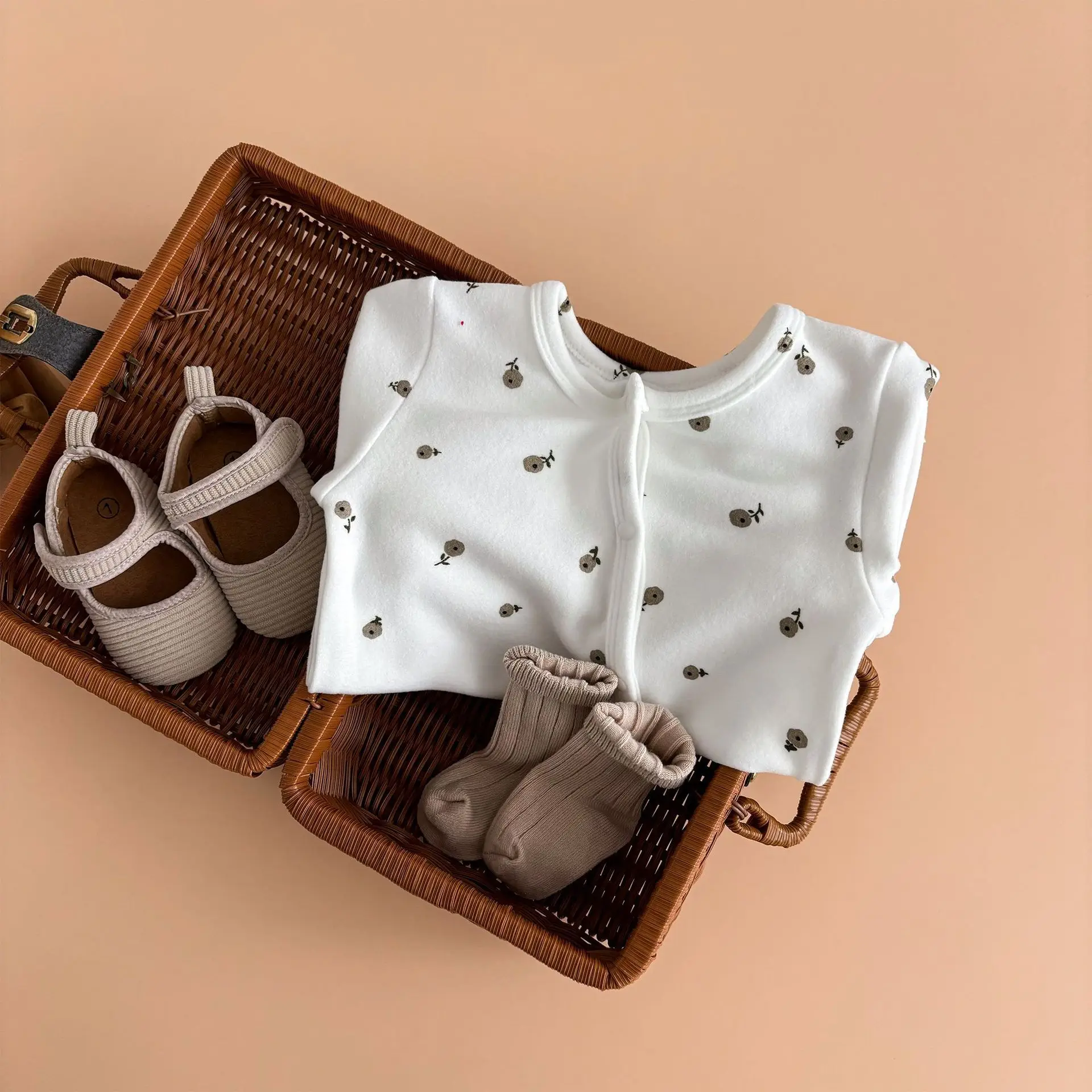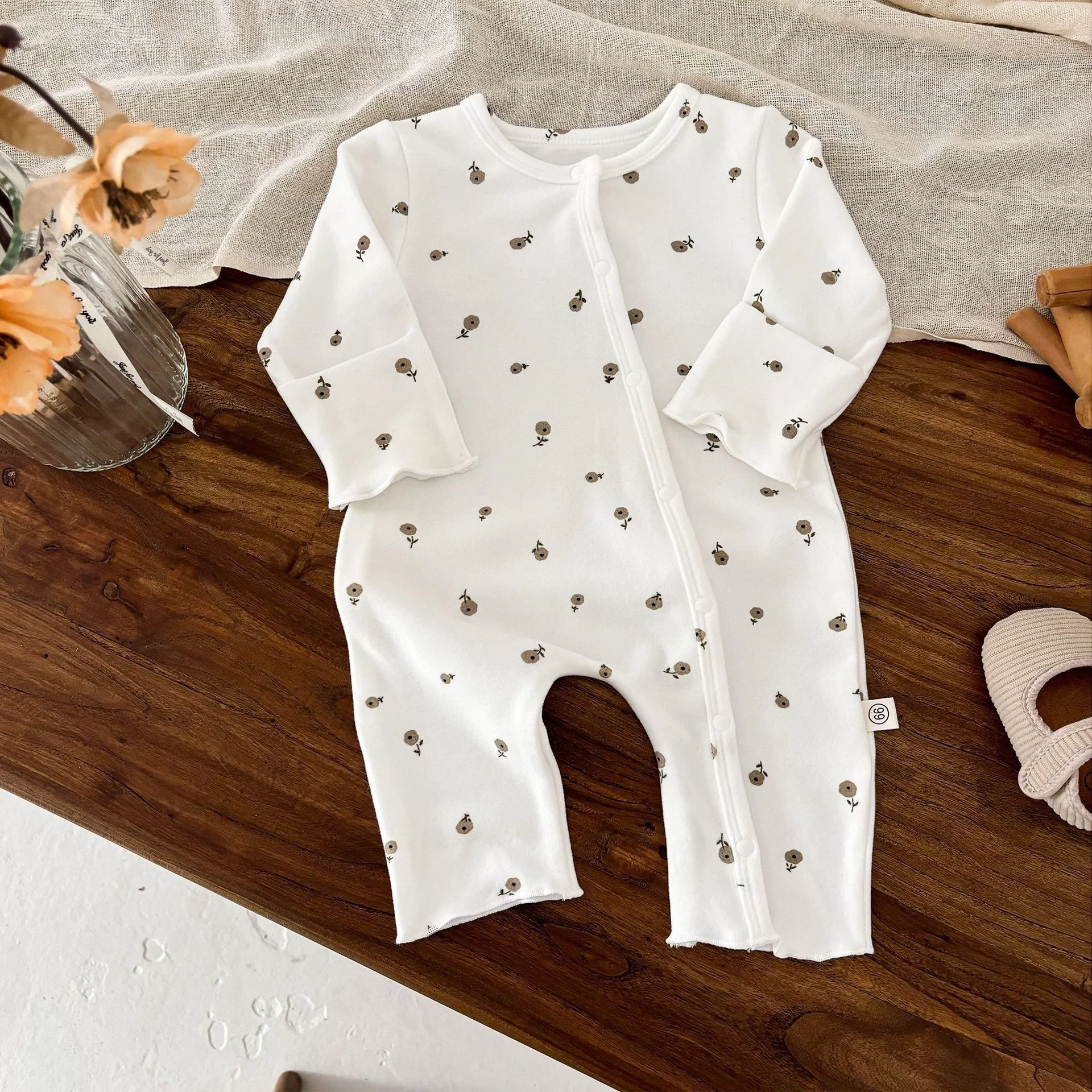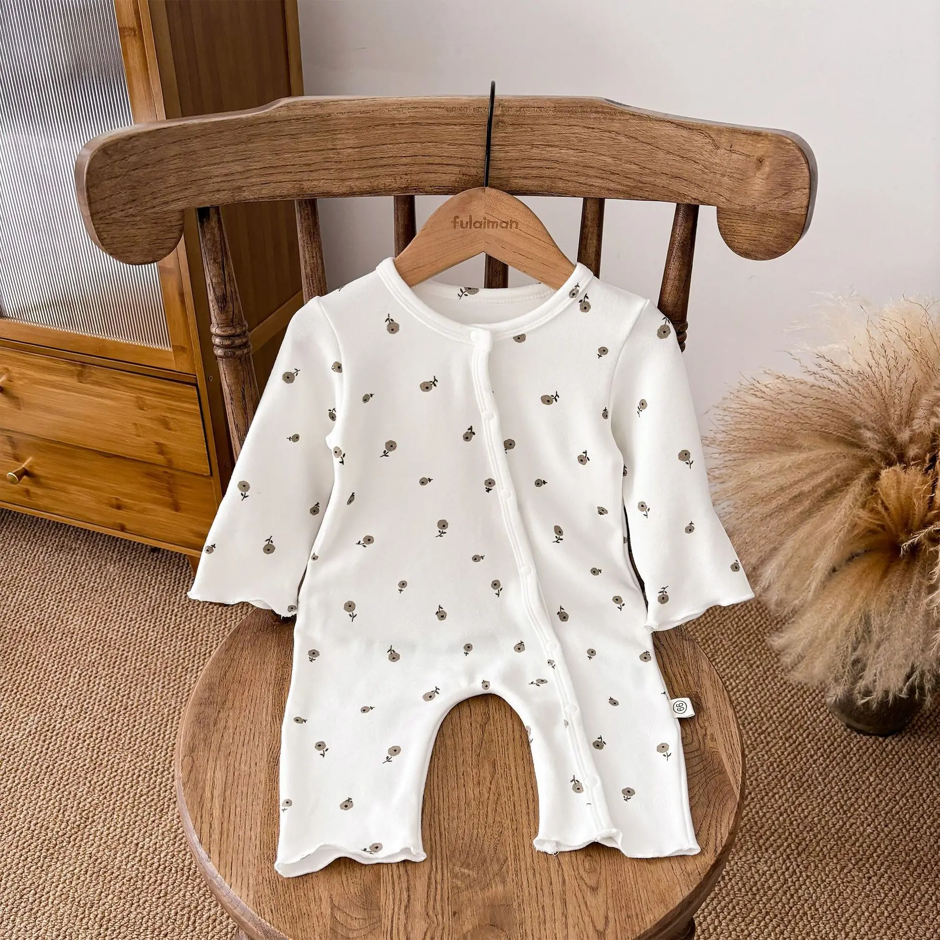 Custom Winter Casual ODM Unisex Baby Romper Button Pattern Long Sleeve Jumpsuit
