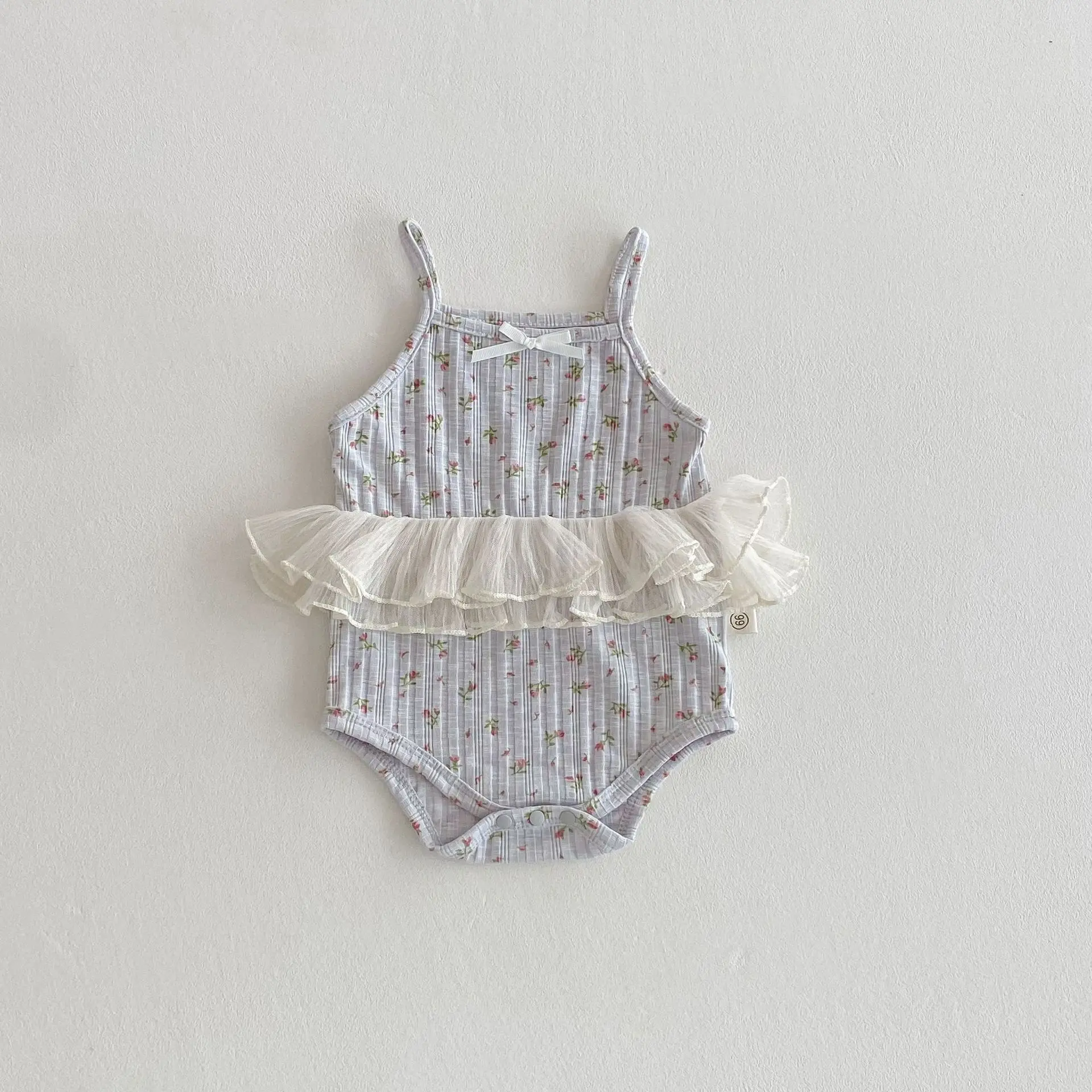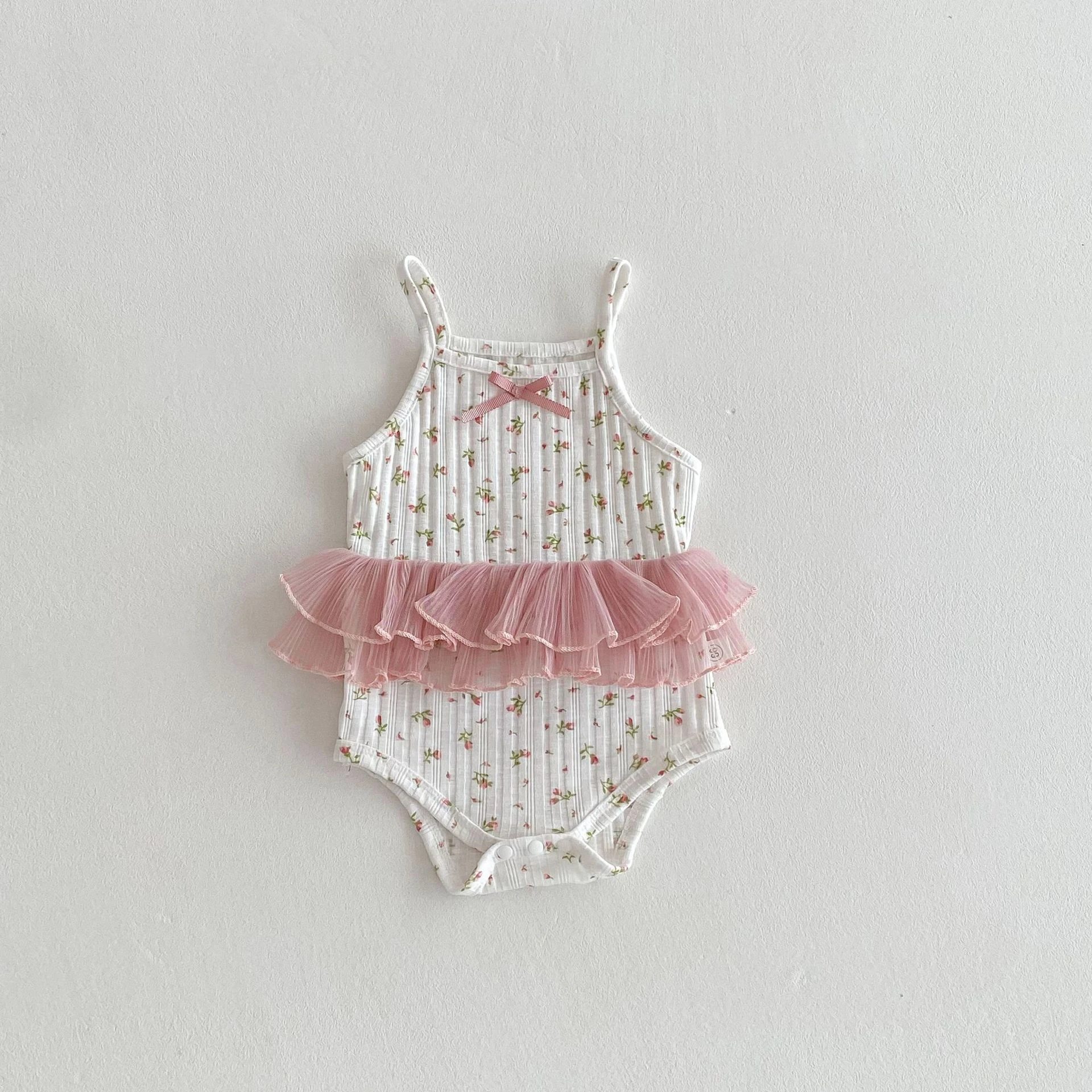2026 Summer Infant Girl Bow Suspender Harness Romper Printed Lace Casual Style Button Closure 100% Cotton ODM Supply
